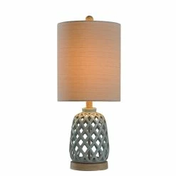 New ❤️ StyleCraft Home Collection StyleCraft Ceramic Blue Table Lamp – White Hardback Fabric Shade ⭐
