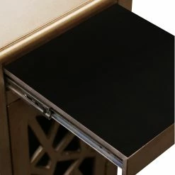 The Chairside End Table comes in a mahogany veneer wood finish.
