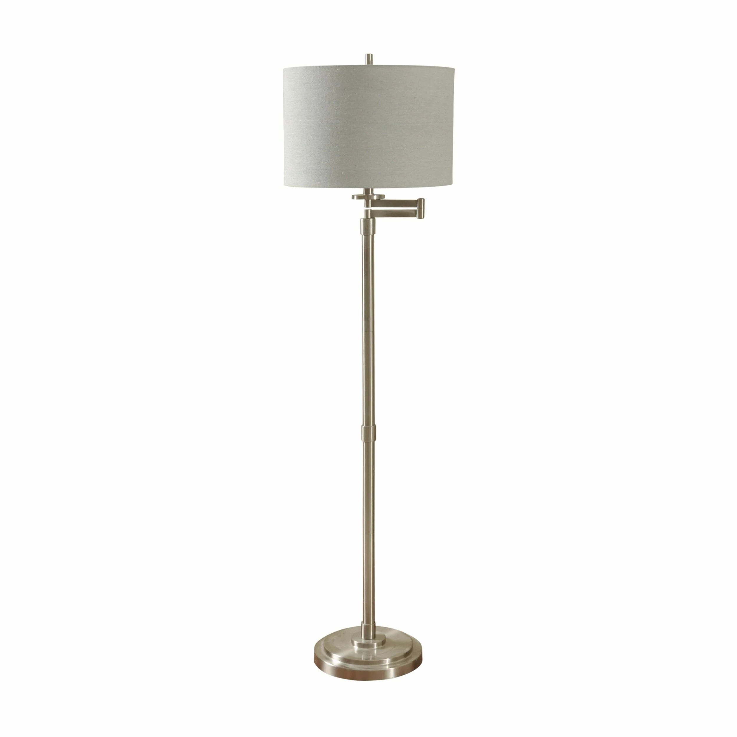 Bring a stylish addition into your home with the Brushed Steel Floor Lamp with Swing Arm. In addition to a brushed steel body, this item also comes with a white drum shade made of hardback fabric. Use the swing arm to alter the height of the lamp to make it more suitable for reading and other activities.