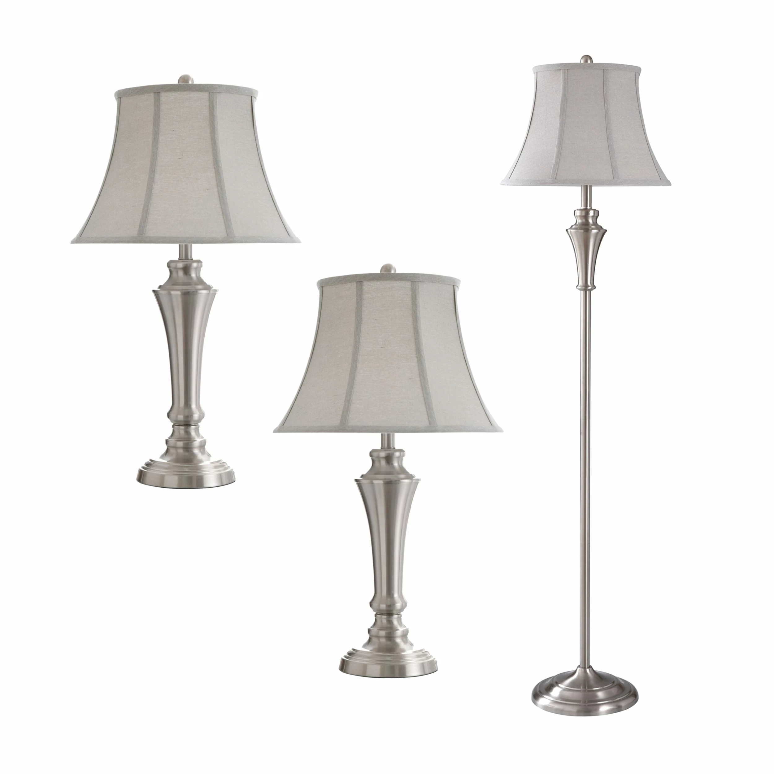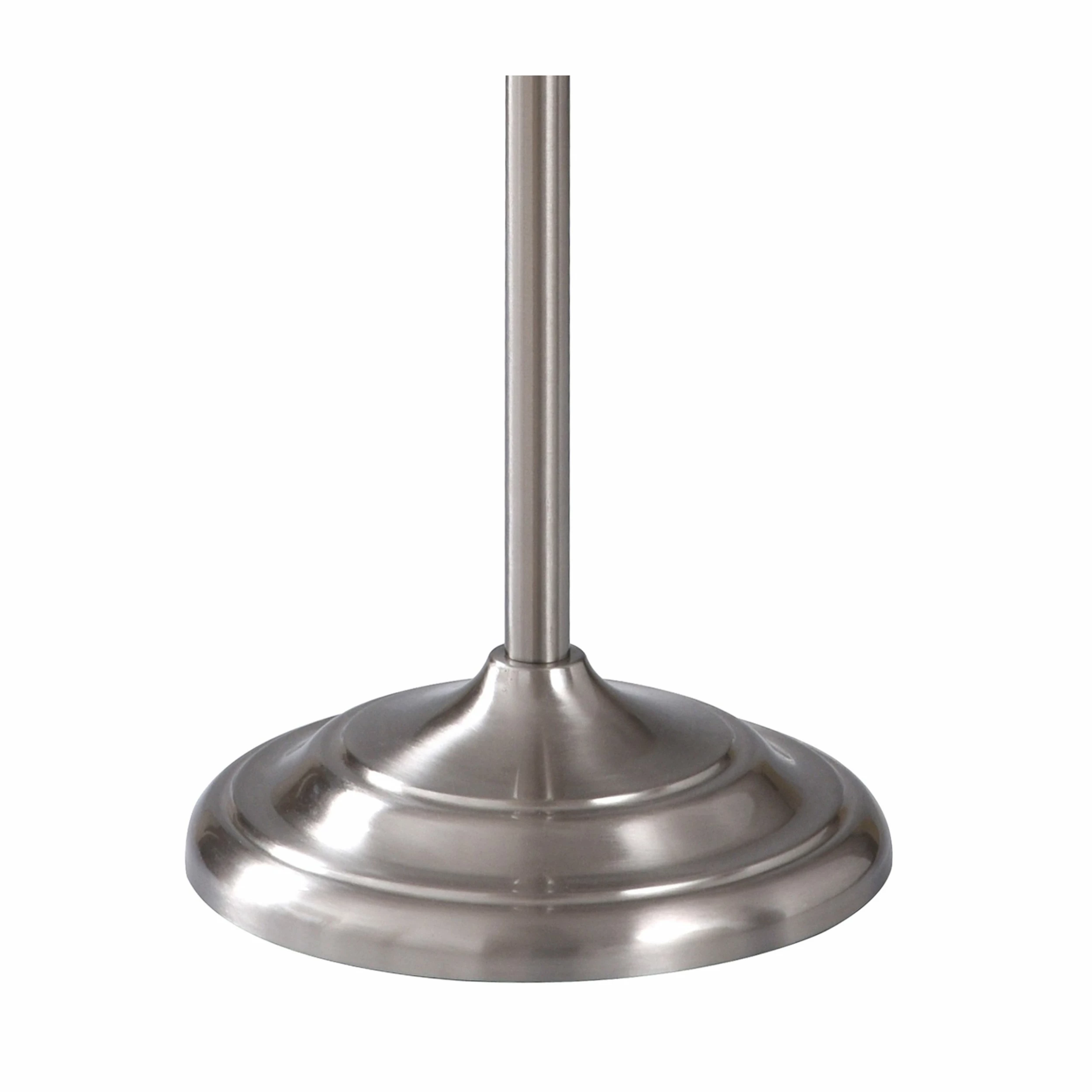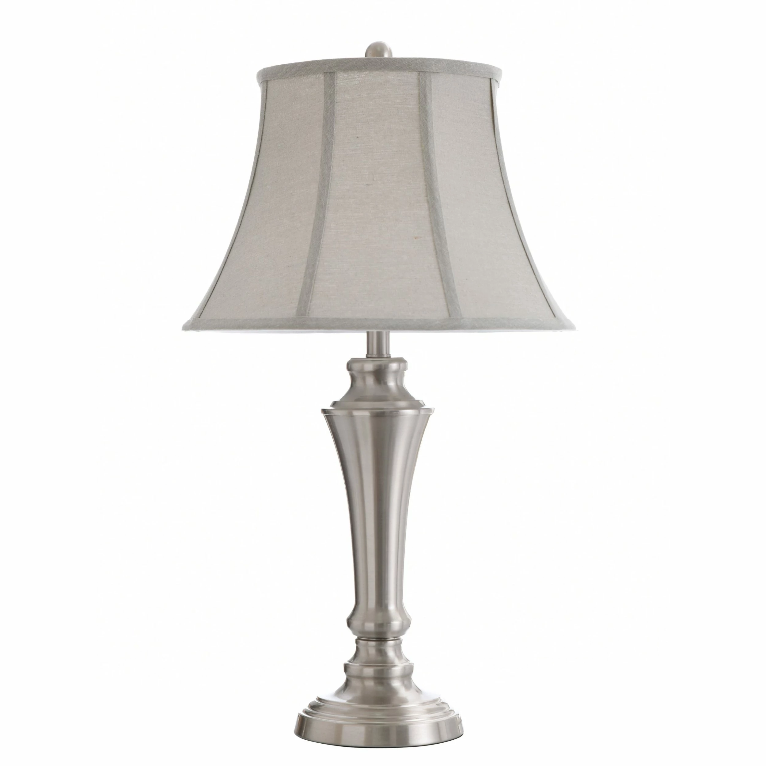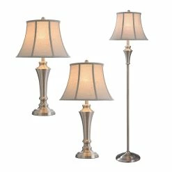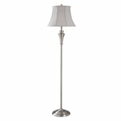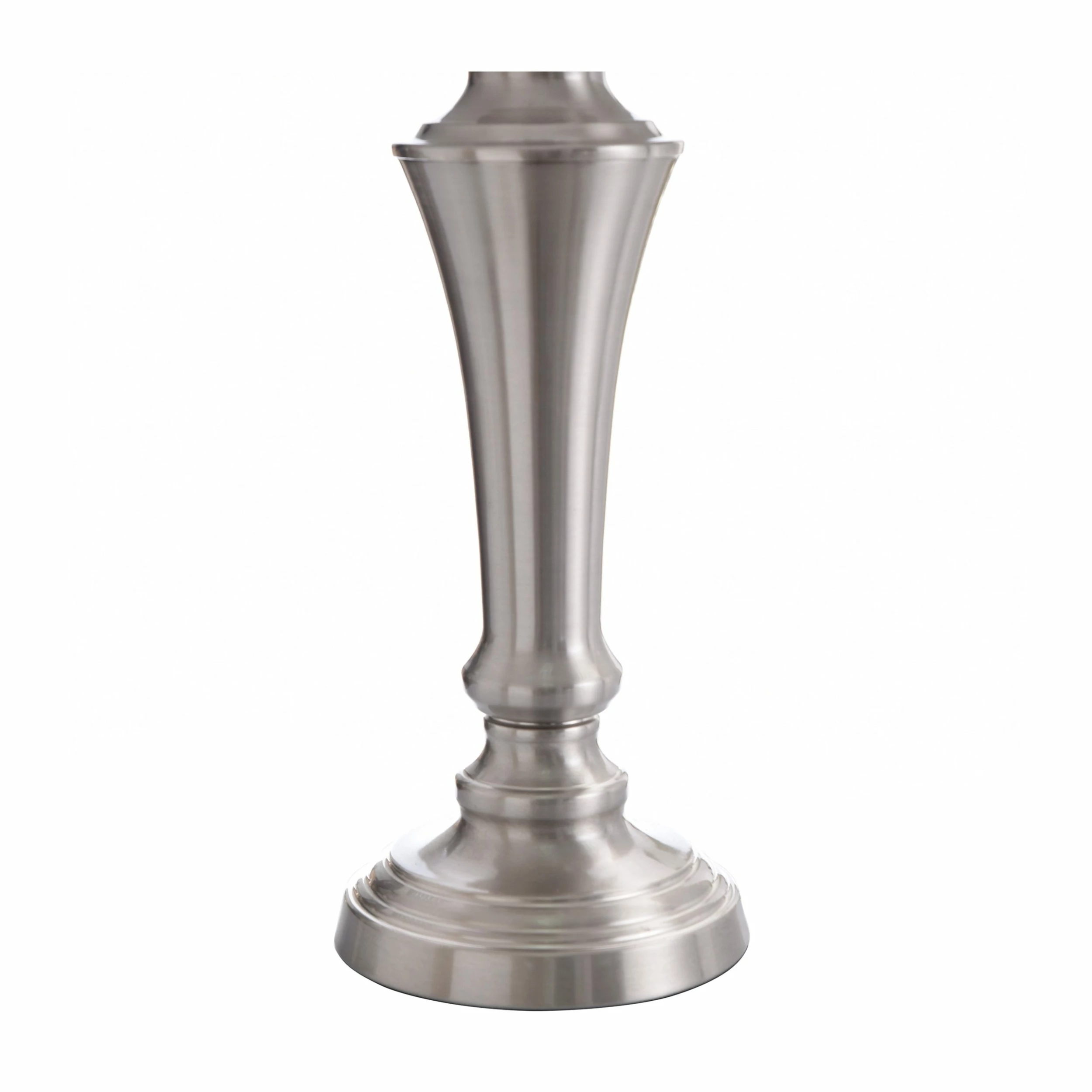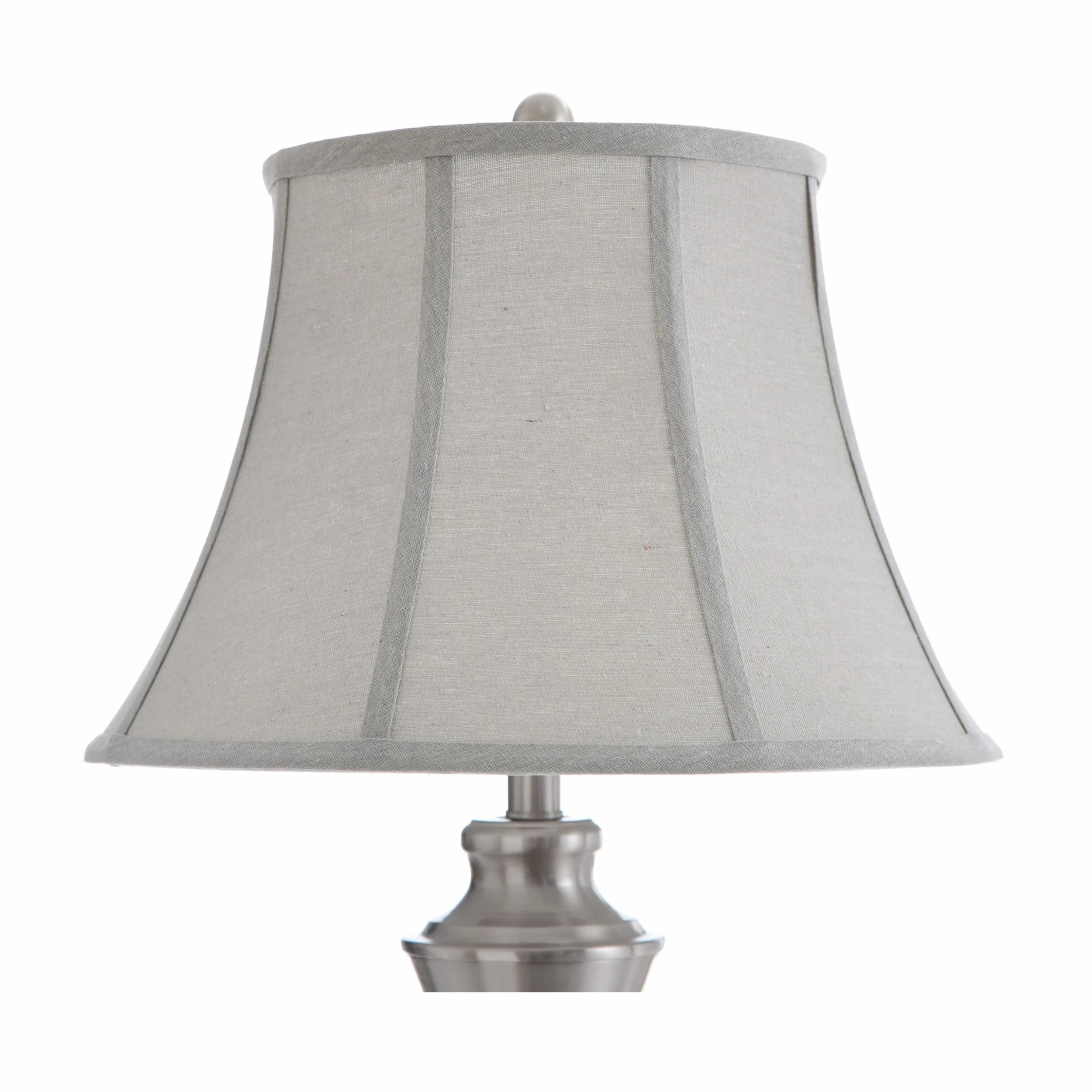 This floor and table lamp comes in a brushed nickel finish with a geneva taupe shade; Requires one (1) 100-watt Incandescent E26 base bulb (not included).