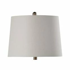 This table lamp comes in a sheer blue frame with a brussels white shade; Requires one (1) 150-watt Incandescent E26 base bulb (not included).