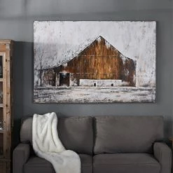 This Aged Barnhouse large hand painted oil canvas wall art features a rustic farmhouse on a stretched canvas with a wood frame. Handmade by a skilled artist with a cool rustic style, this piece comes ready to display in your living room or dining room. It’s a large and stylish rustic touch ideal for the modern throwback home.