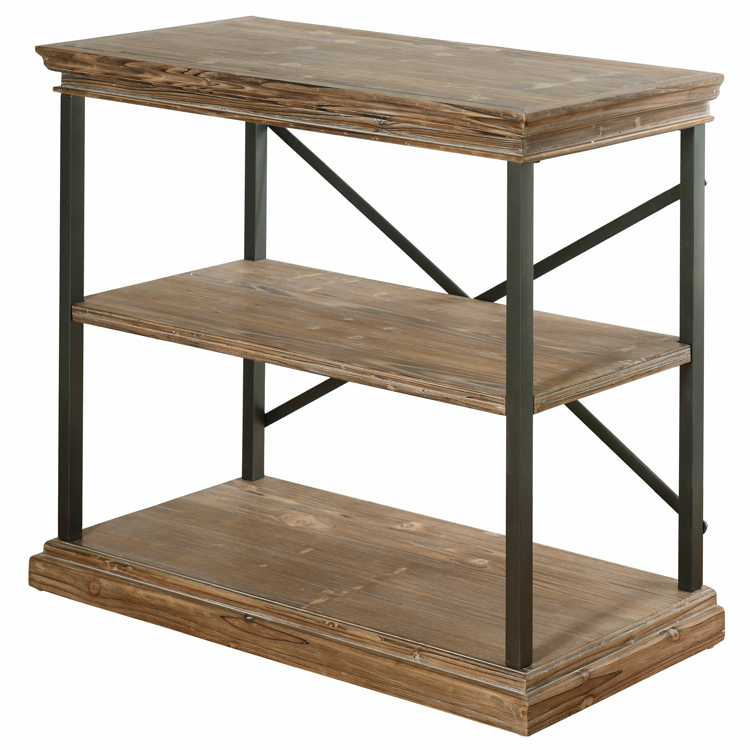 This Archer Ridge bookcase is the perfect blend of traditional and modern design. Its coated steel bar frame supports three driftwood gray wooden shelves, the topmost of which features crown edges for a touch of classic elegance. Whether your style is rustic, industrial, or sophisticated, this bookcase will make the perfect addition to your space.