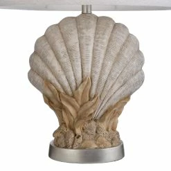 This Table Lamp comes in a sandstone poly frame with a white softback fabric shade; Requires one (1) 150-watt Incandescent E26 base bulb (not included).