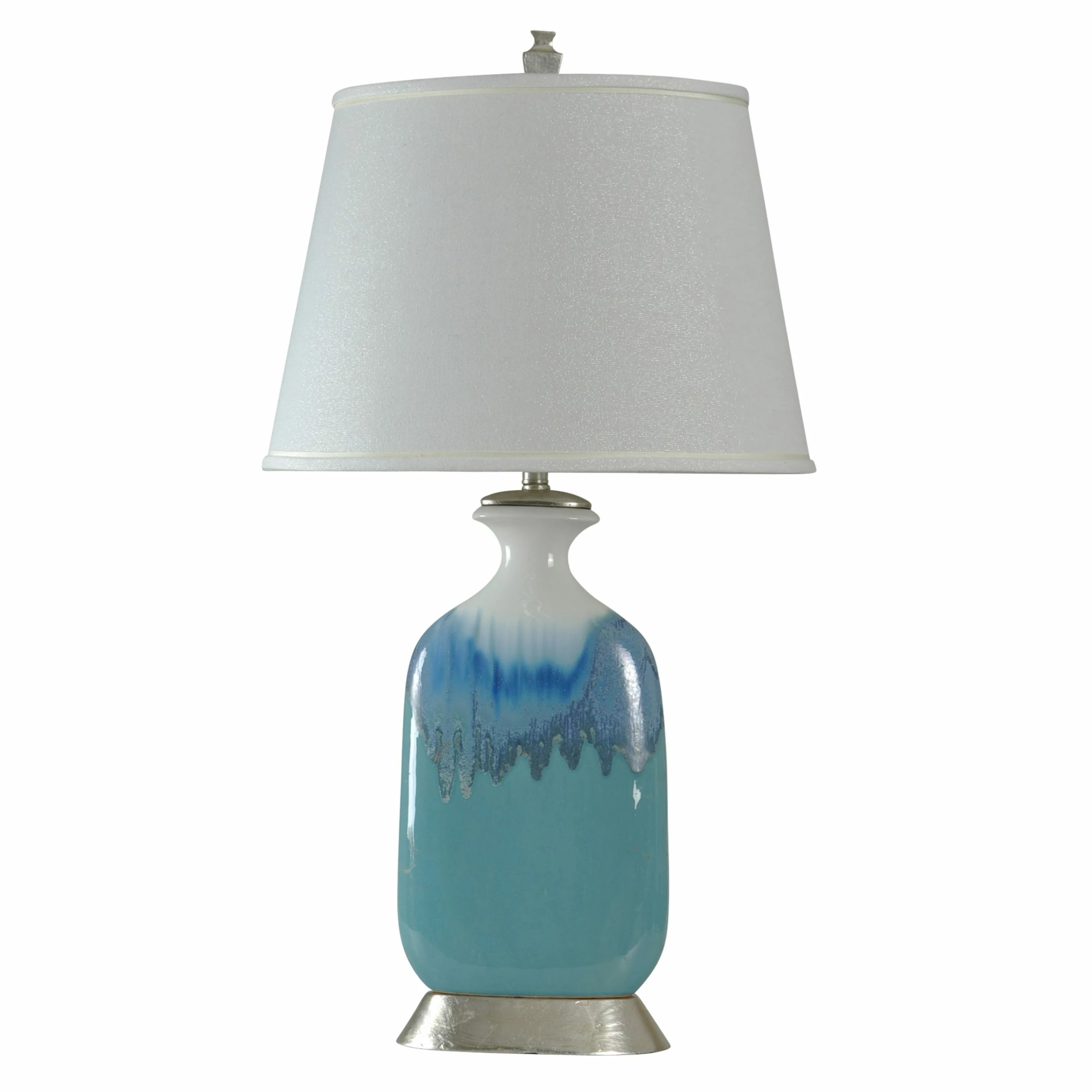 The Beach Grove ceramic table lamp uses soft round edges and a bottle-like profile to create a handsome coastal decor look. Made with a blue multi-tone glaze finish, this lamp is set on a silver base with a white tapered fabric hardback shade. It’s a welcome addition to casual contemporary decor styles throughout the home.