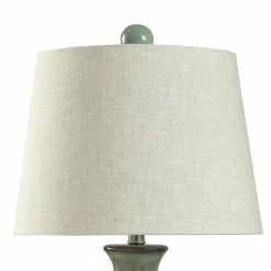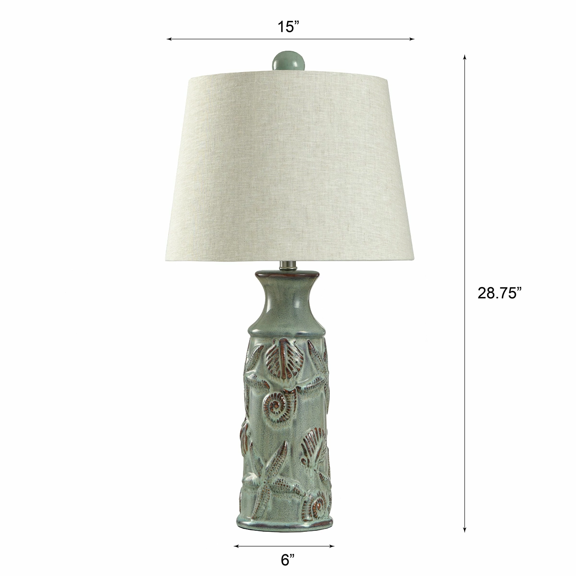 This Table Lamp comes in a blue bay ceramic frame with a beige hardback fabric shade; Requires one (1) 100-watt Incandescent E26 base bulb (not included).