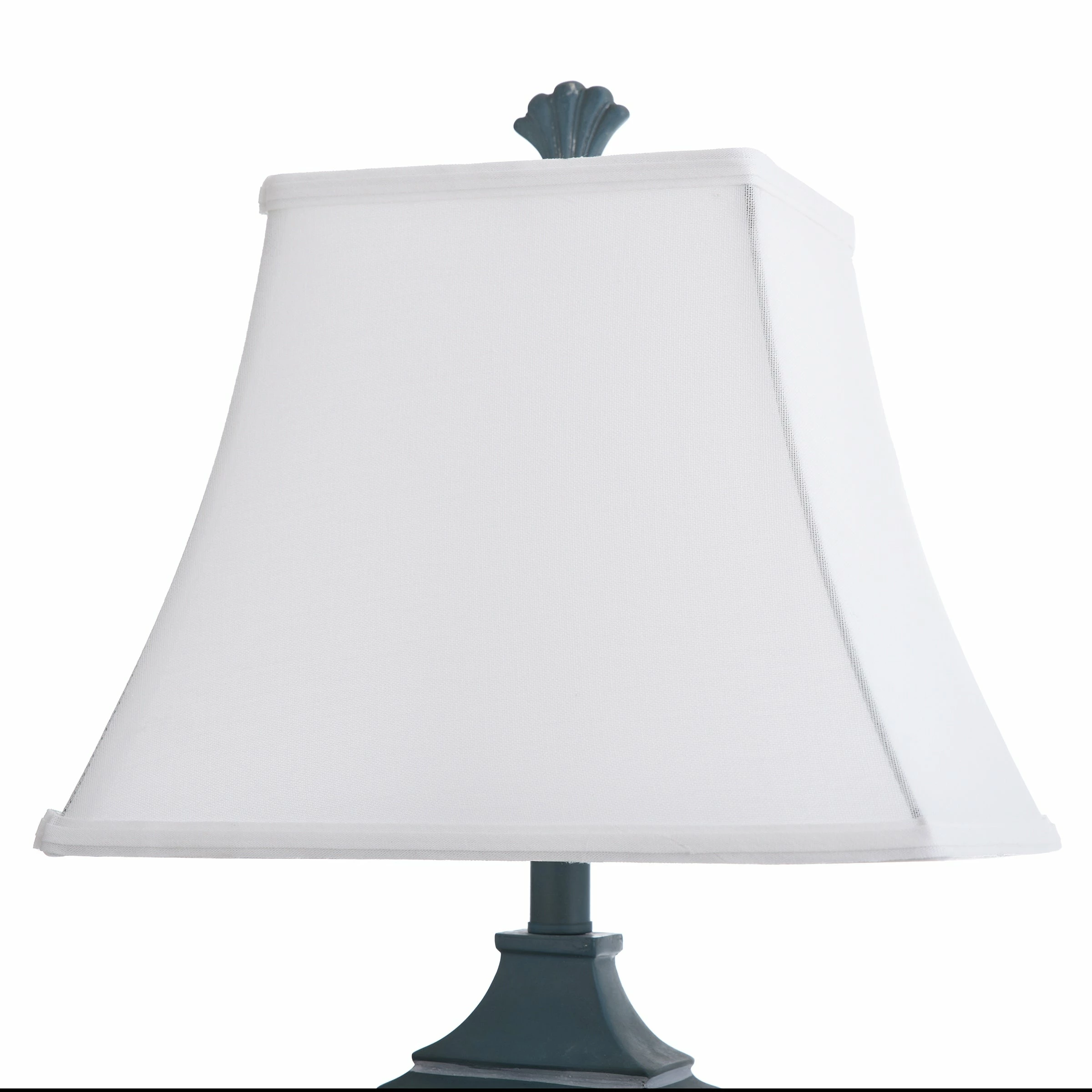 This Table Lamp comes in a blue poly frame with a white softback fabric shade; Requires one (1) 60-watt Incandescent E26 base bulb (not included).