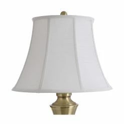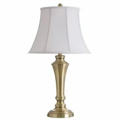 This floor and table lamp comes in a brass finish with a geneva white shade; Requires one (1) 100-watt Incandescent E26 base bulb (not included).