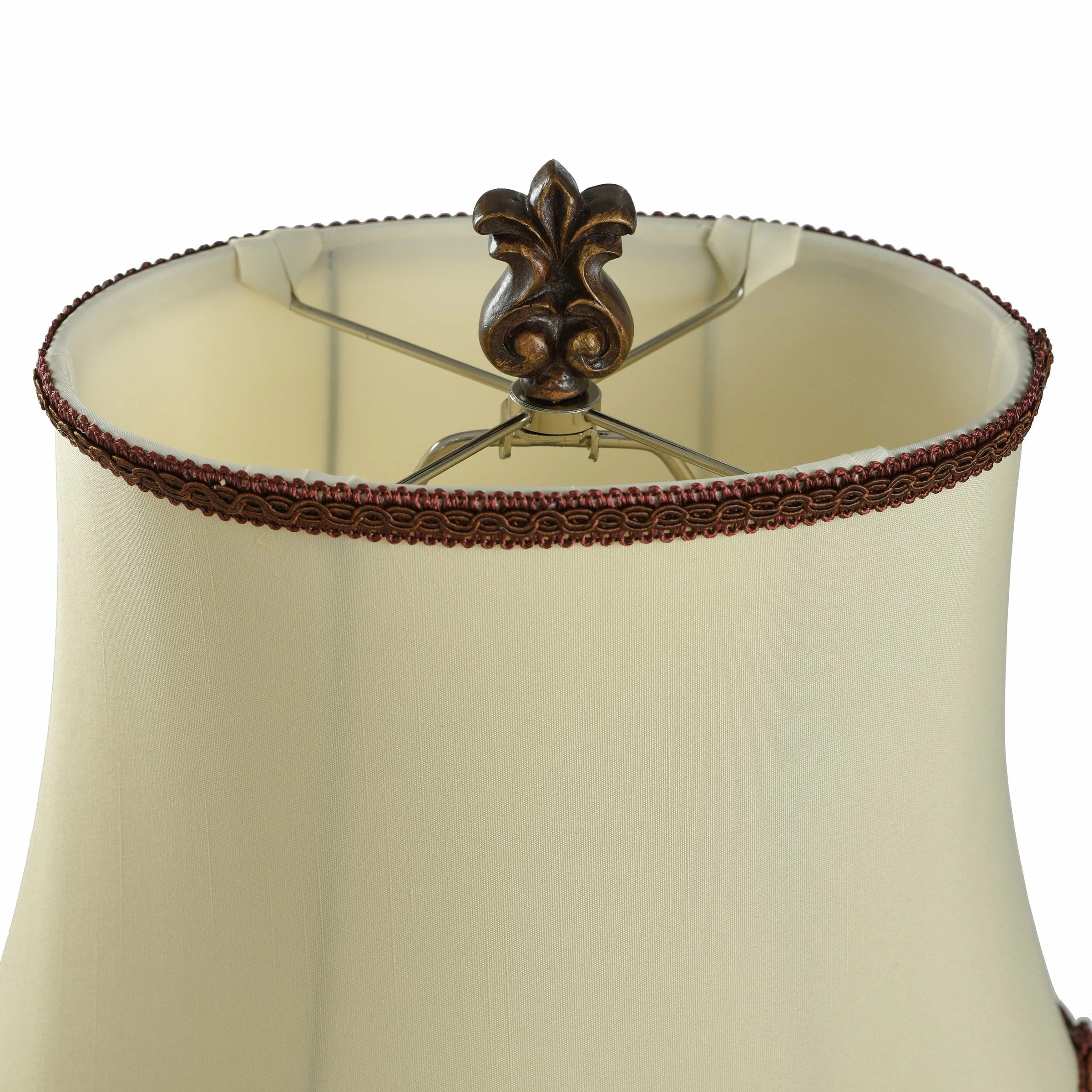 Our Maximus Bronze lamp is a versatile addition to any room with its warm toned base and ivory shade featuring a coordinating warm bronze trim and soutache.