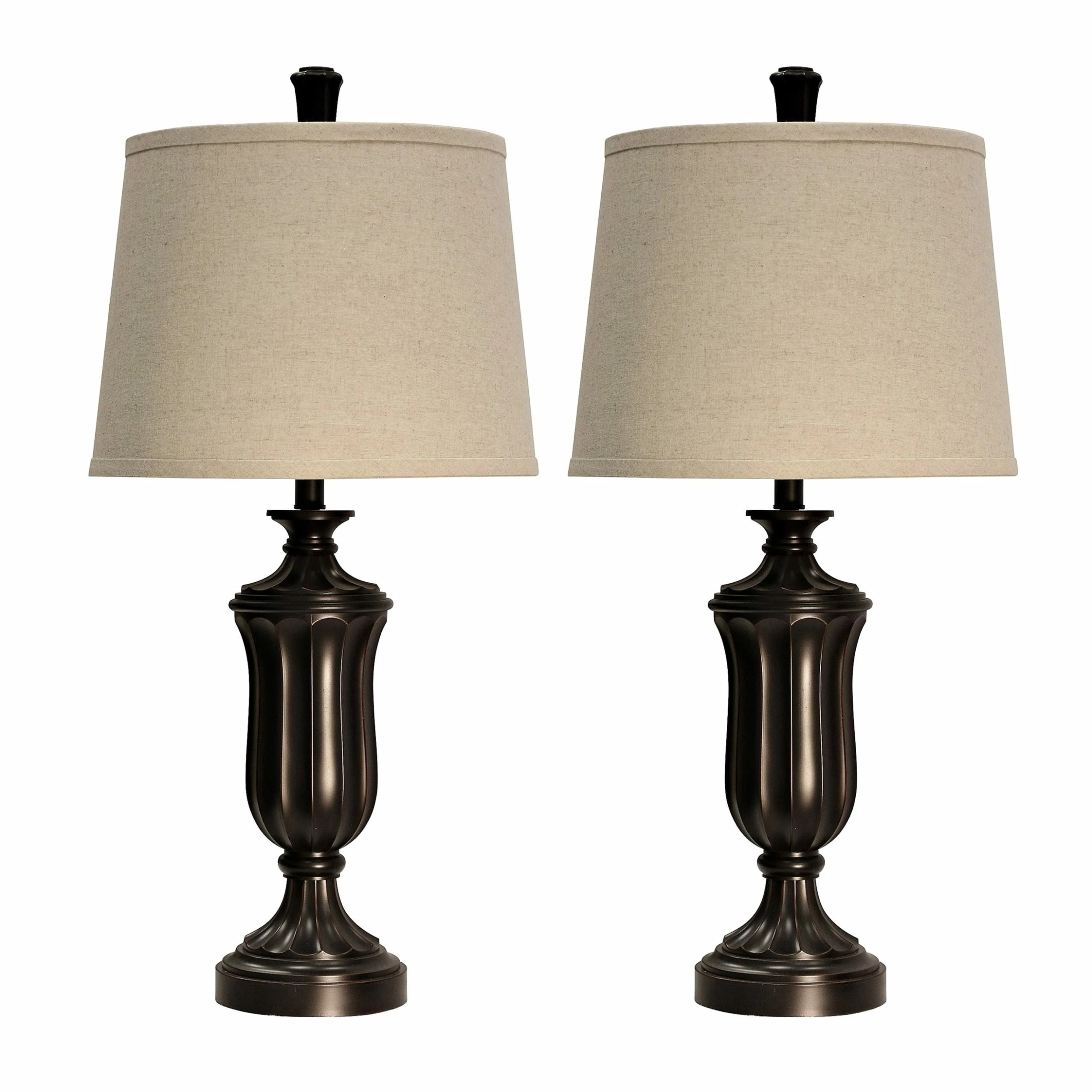 Bring a complementary nature into any room with this Pair of Madison Bronze Injection Molded Table Lamps. The bodies come with a bronze wood finish. The shades, made of hardback fabric, come in beige. This set of two lamps means you can bring quite a bit of light into your living room.
