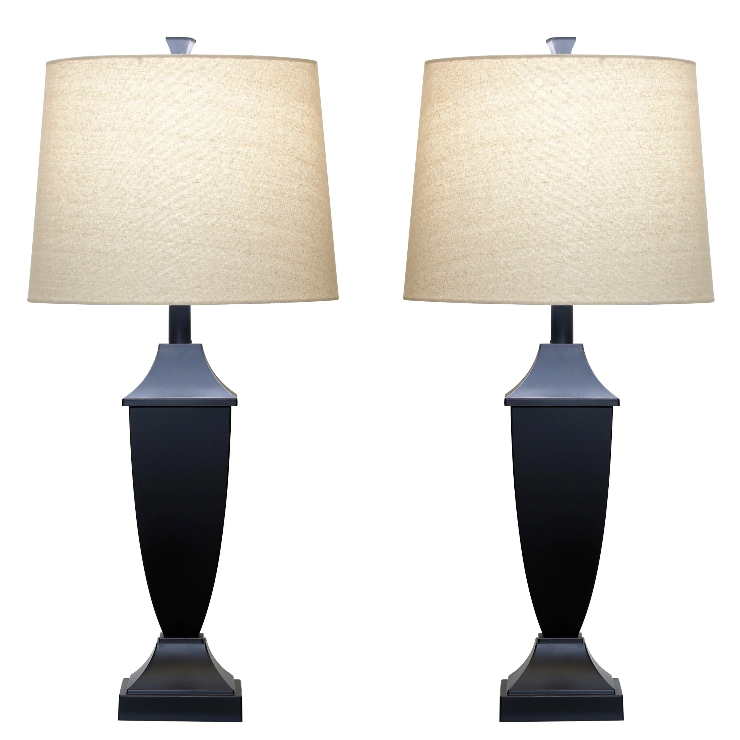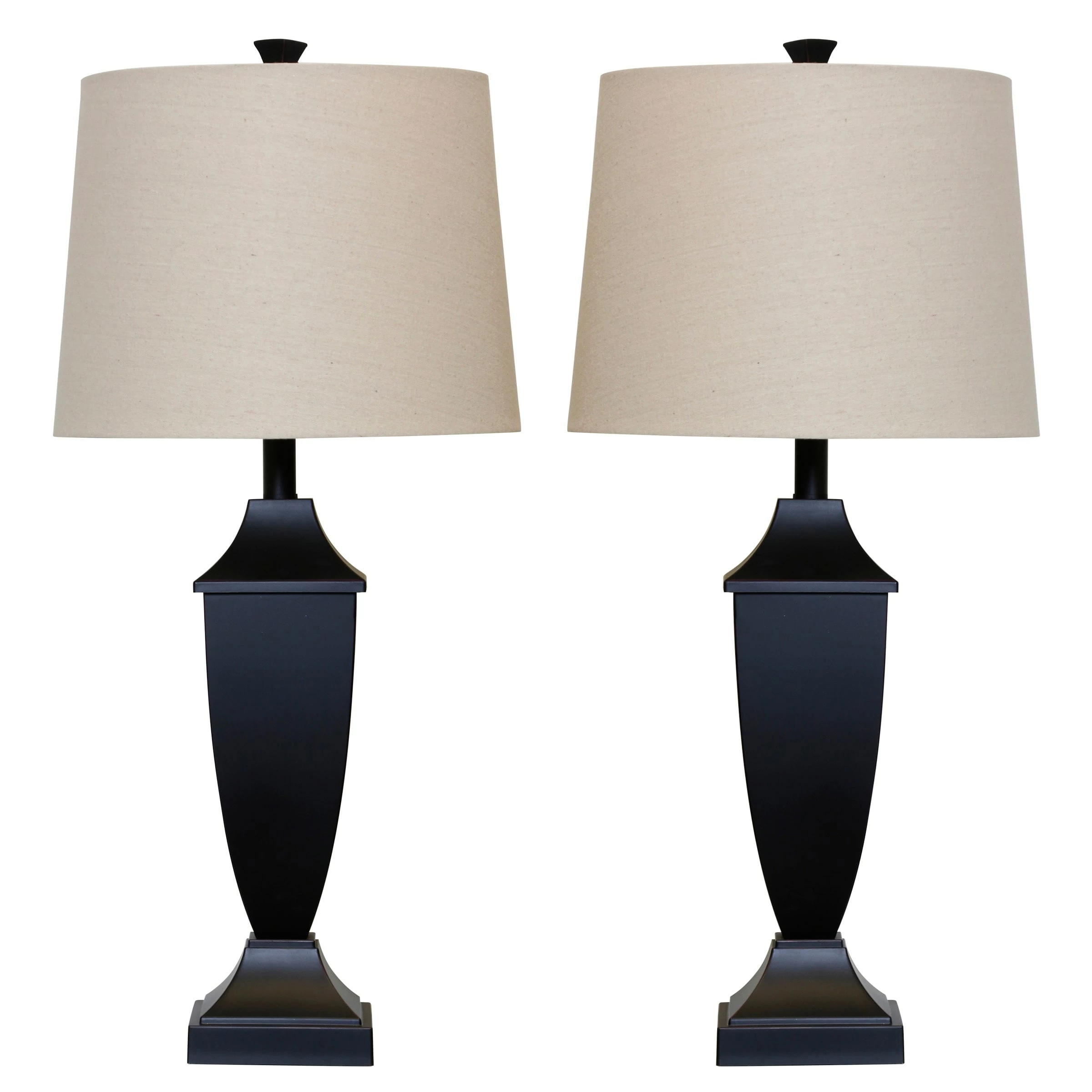 Brighten your home’s interior with this set of two table lamps featuring rich bronze-finished wood. The transitional theme coordinates well with your existing classic home decor and helps tie your room together through the use of symmetry. Each lamp features a fabric shade in a tasteful shade of cream to soften the light for a more pleasing mood.
