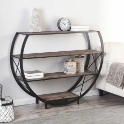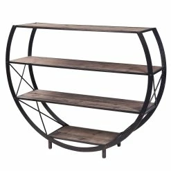 - Shelf dims: base shelf: 23.5″W, 2nd shelf: 45.25″W, 3rd shelf: 53″W, top shelf: 48″W