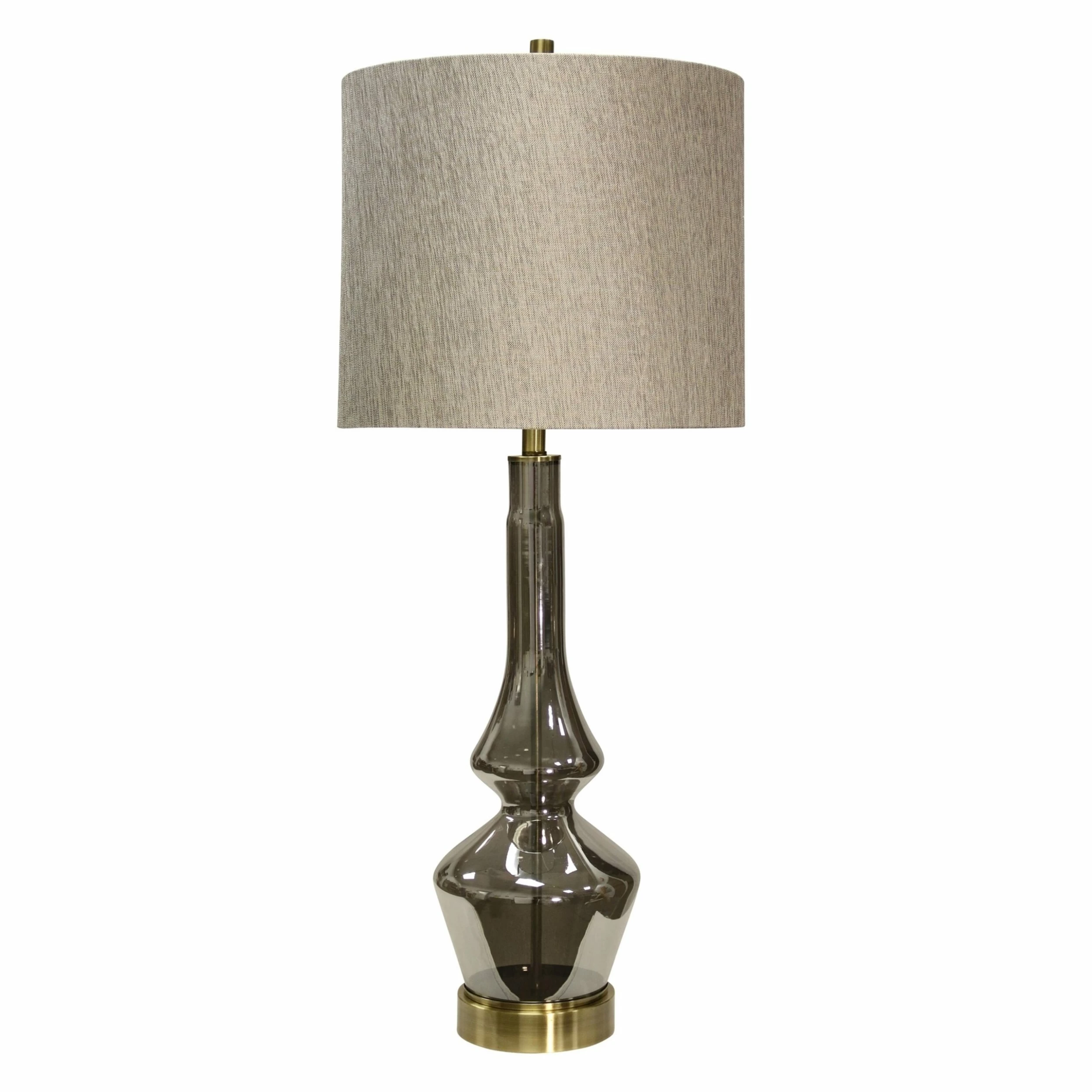 A bold contemporary portable light with a vintage inspiration, the Burgetts table lamp pairs a curved smoke glass finish with a fabric hardback shade. It’s crafted with a delicate curved profile that’s inspired by more traditional looks, as emphasized by its beige tone shade top and round bronze tone base. It’s a favorite for inspiring minimalist modern decor with a throwback style without overpowering it.