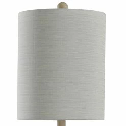 This table lamp comes in a blue finish and white shade. This fixture’s body frame is made of ceramic and metal material and has a shade made of hardback fabric.
