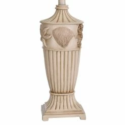 This Table Lamp comes in a cream poly frame with a cream fabric shade; Requires one (1) 100-watt Incandescent E26 base bulb (not included).