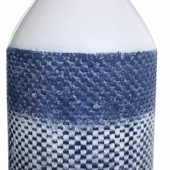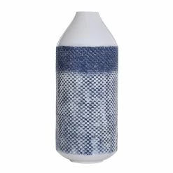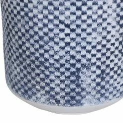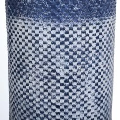 The classic white and blue distress finish on this tall metal vase from the Cree collection ensures it’s the perfect complement to traditional décor. This cylindrical checkered metal vase is made of iron and features a narrow round base and tapered mouth. The blue geometric pattern around the base is highlighted by the glossy white top. A stunning accent piece, this vase can brighten up any living room, hallway, dining room, foyer, or bedroom.