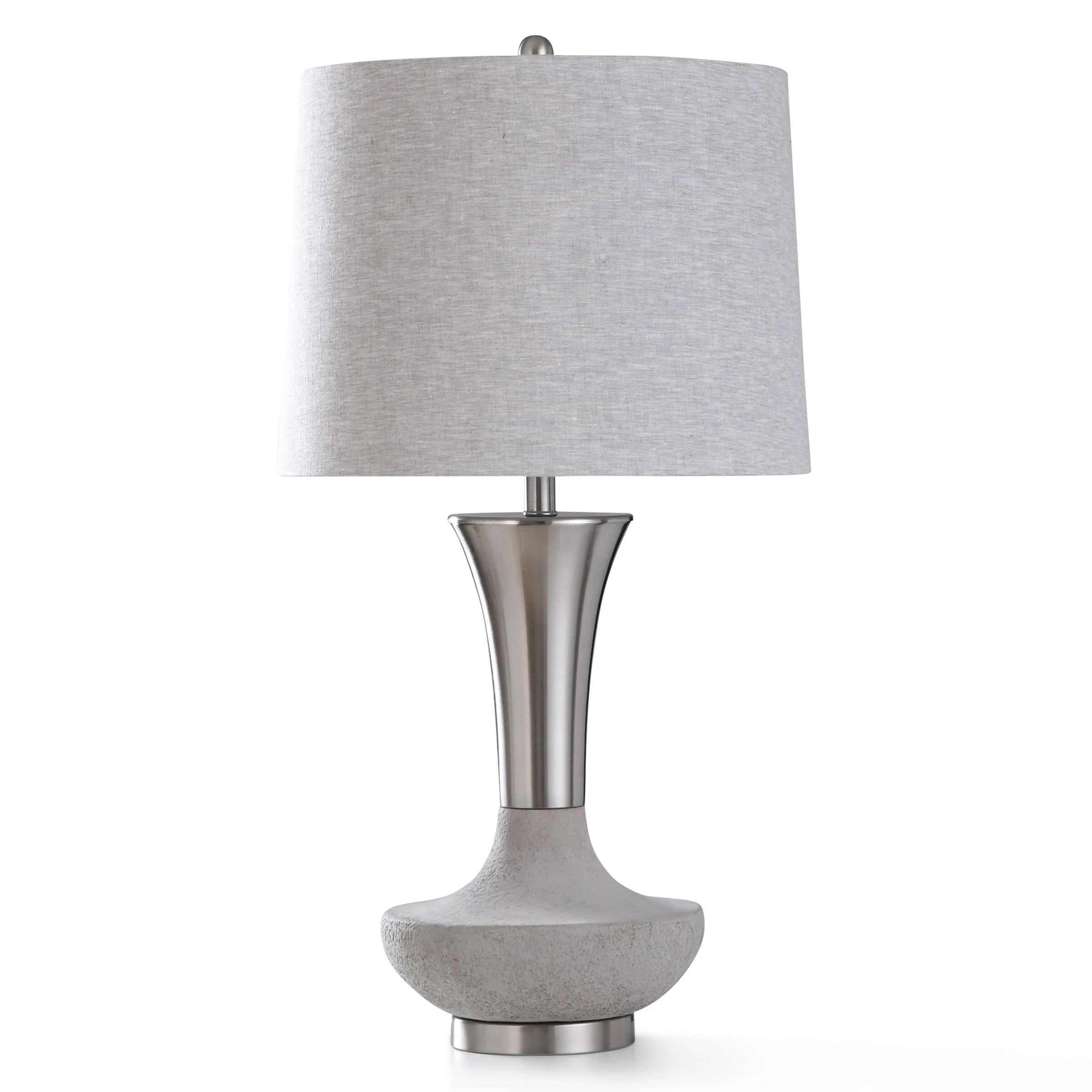Turn your home’s style up a notch with this concrete and brushed nickel Dante table lamp. Its unique genie design combines a concrete and steel metal base with a matching finial and hardback off-white linen shade. Plus, its 3-way switch ensures your living room, bedroom, or hallway always has the perfect amount of light.