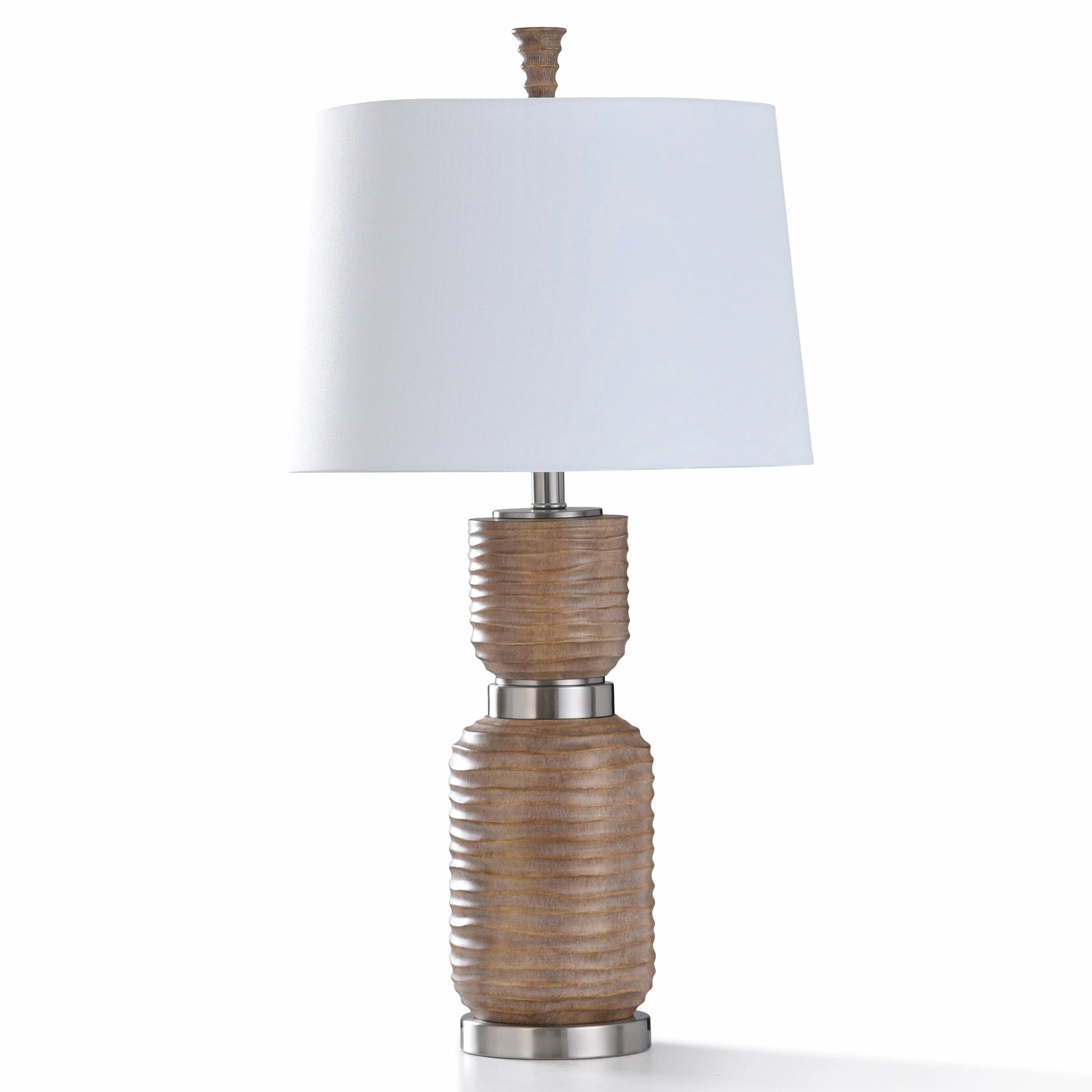 This elegant dark sand Darley table lamp is the perfect lighting fixture to complement any modern bedroom, foyer or living room. It features exquisite details like a painted transitional ribbed body and three-way lighting capacity all set off by a stylish tapered hardback shade and brushed steel base and breaks. Vintage-inspired style lovers are sure to swoon over this standout piece.