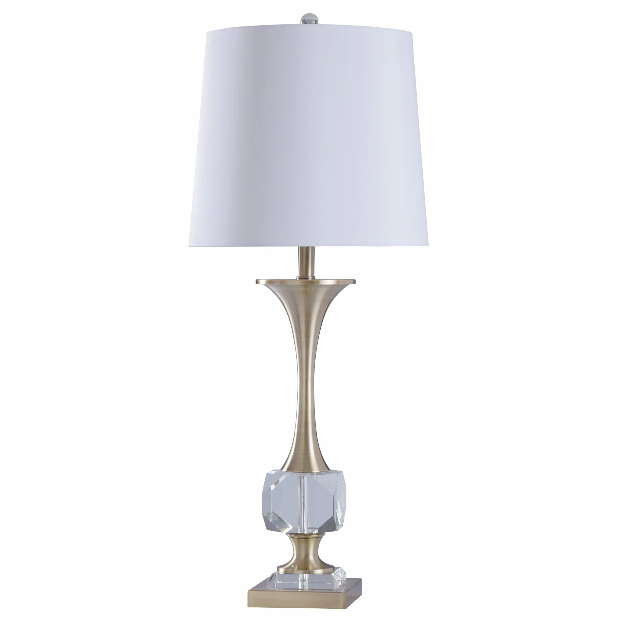This crystal and steel table lamp uses a sleek and simple base to inspire an elegant modernist look. Topped with a round hardback shade, it uses its long profile and select antique elements โ notably, crystal accents ย โ to create a remarkable look. This Table Lamp comes in a crystal and polished nickel crystal and steel frame with a white styrene shade; Requires one (1) 150-watt Incandescent E26 base bulb (not included).