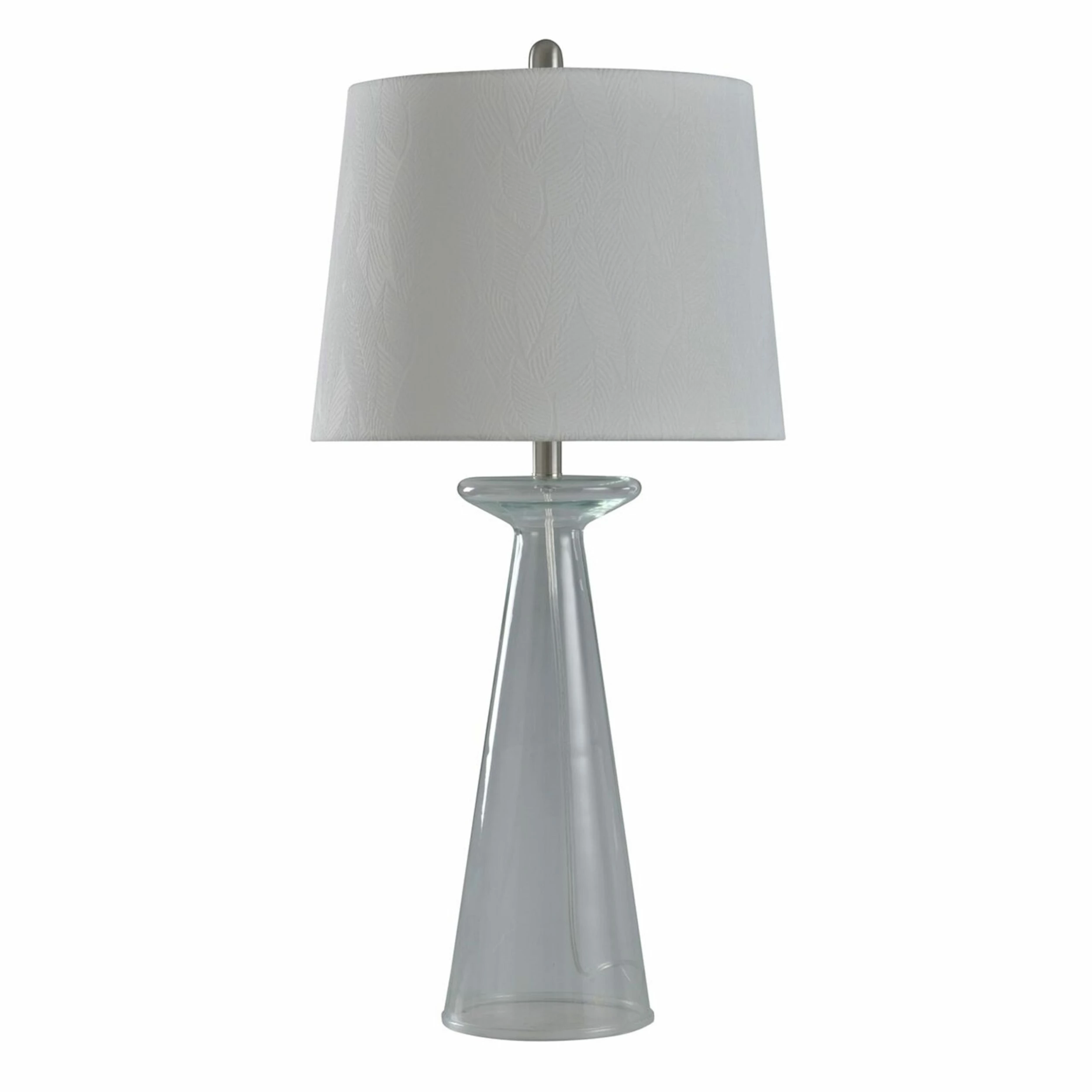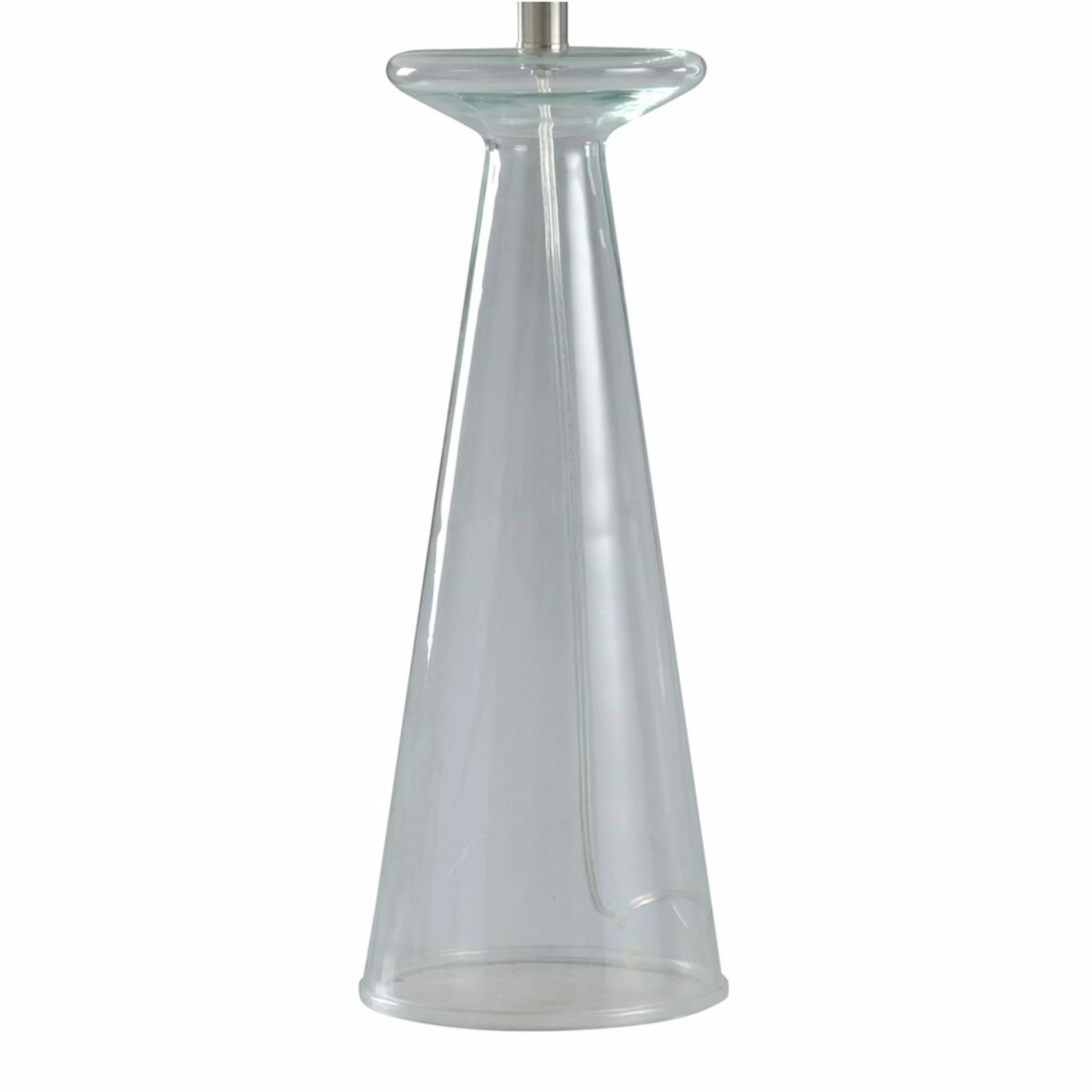 Brighten up your home with the Clear Seeded Glass table lamp from the Empire Collection. The seeded clear finish instantly draws the eye directly to the lamp when you walk into the room it is in. The round shade is made from styrene because this is one lamp made with resilience in mind. A handpainted finish means each piece is unique, with possible slight variations. No two lamps are exactly alike.