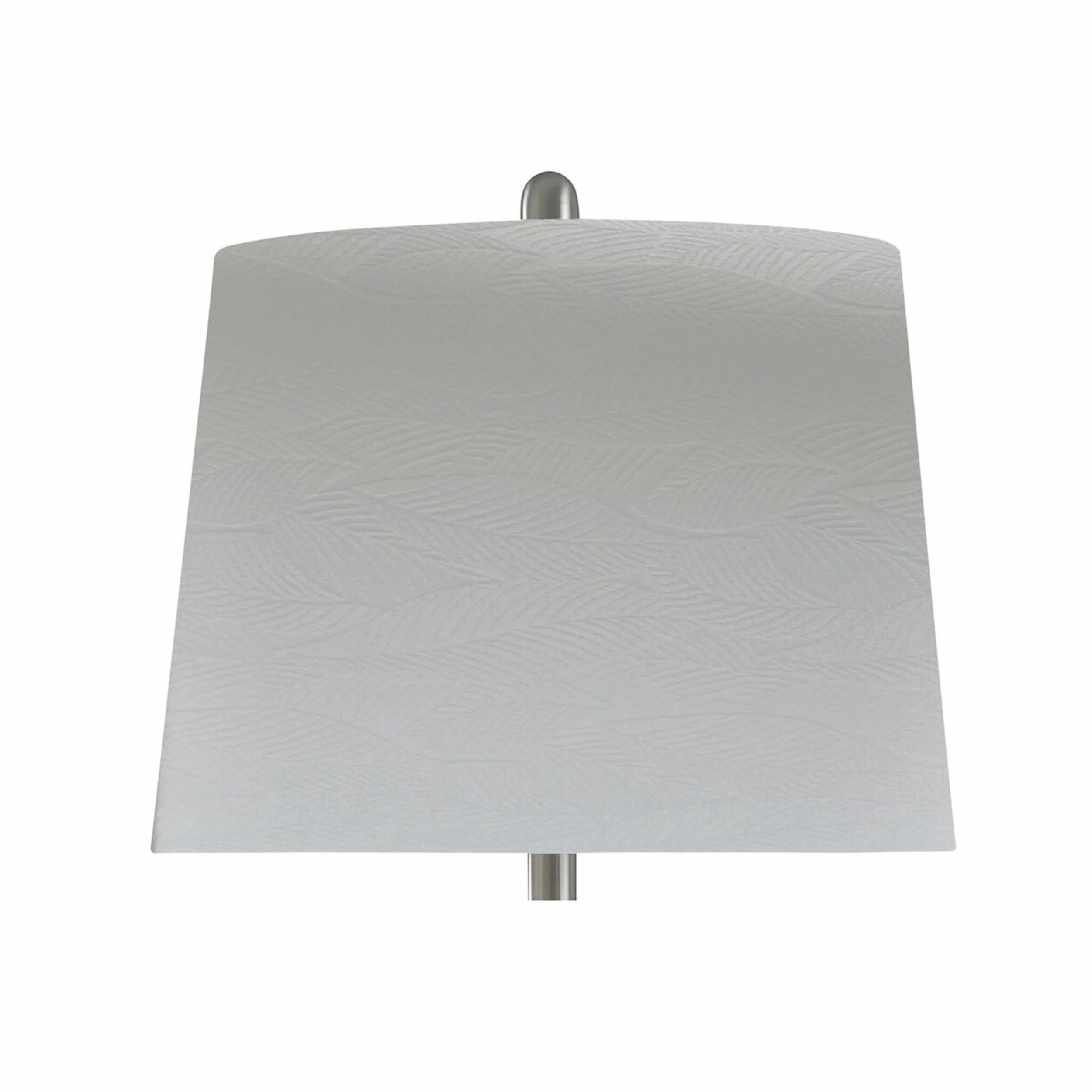 This table lamp comes in a seeded clear frame with a white shade; Requires one (1) 150-watt Incandescent E26 base bulb (not included).