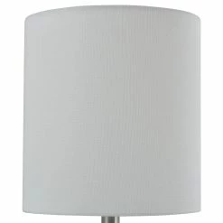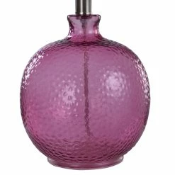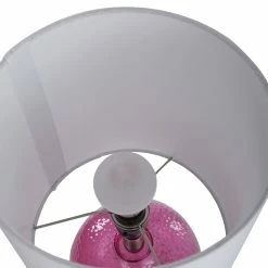 This table lamp comes in a bright purple finish with a white shade; Requires one (1) 60-watt Incandescent E26 base bulb (not included).