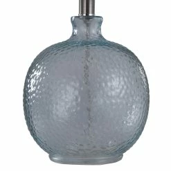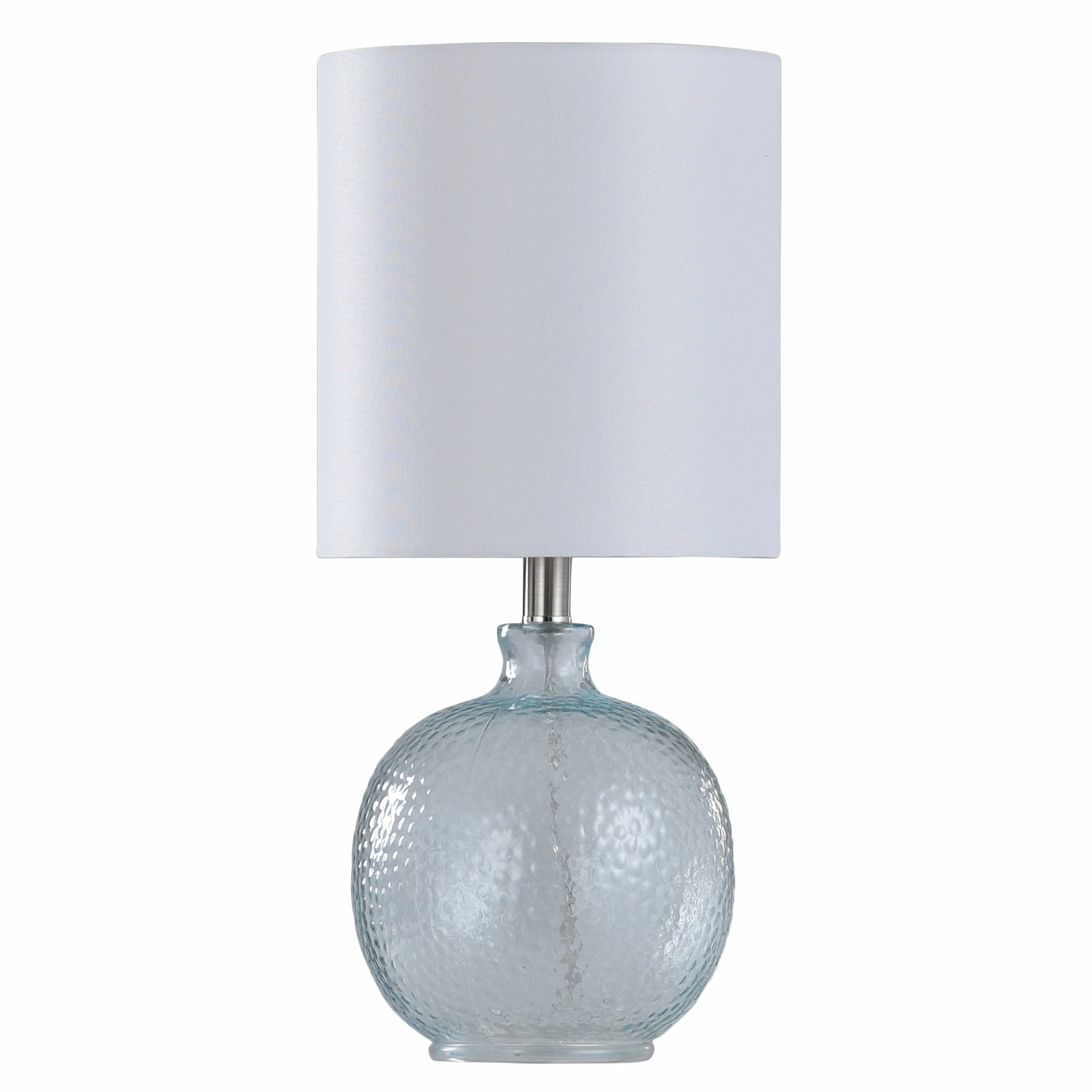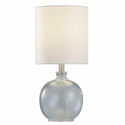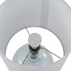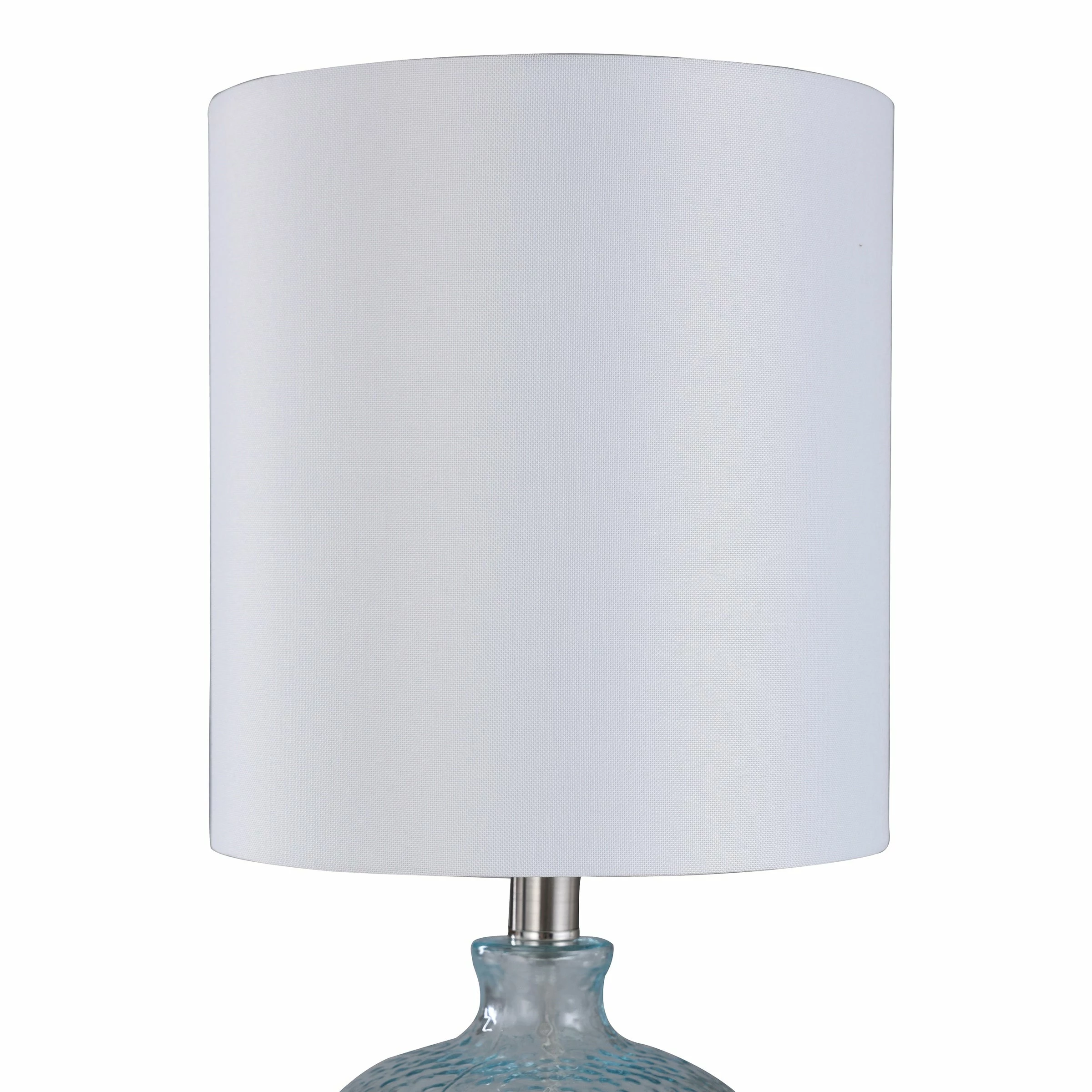 This table lamp comes in a light aqua blue finish with a white shade; Requires one (1) 60-watt Incandescent E26 base bulb (not included).