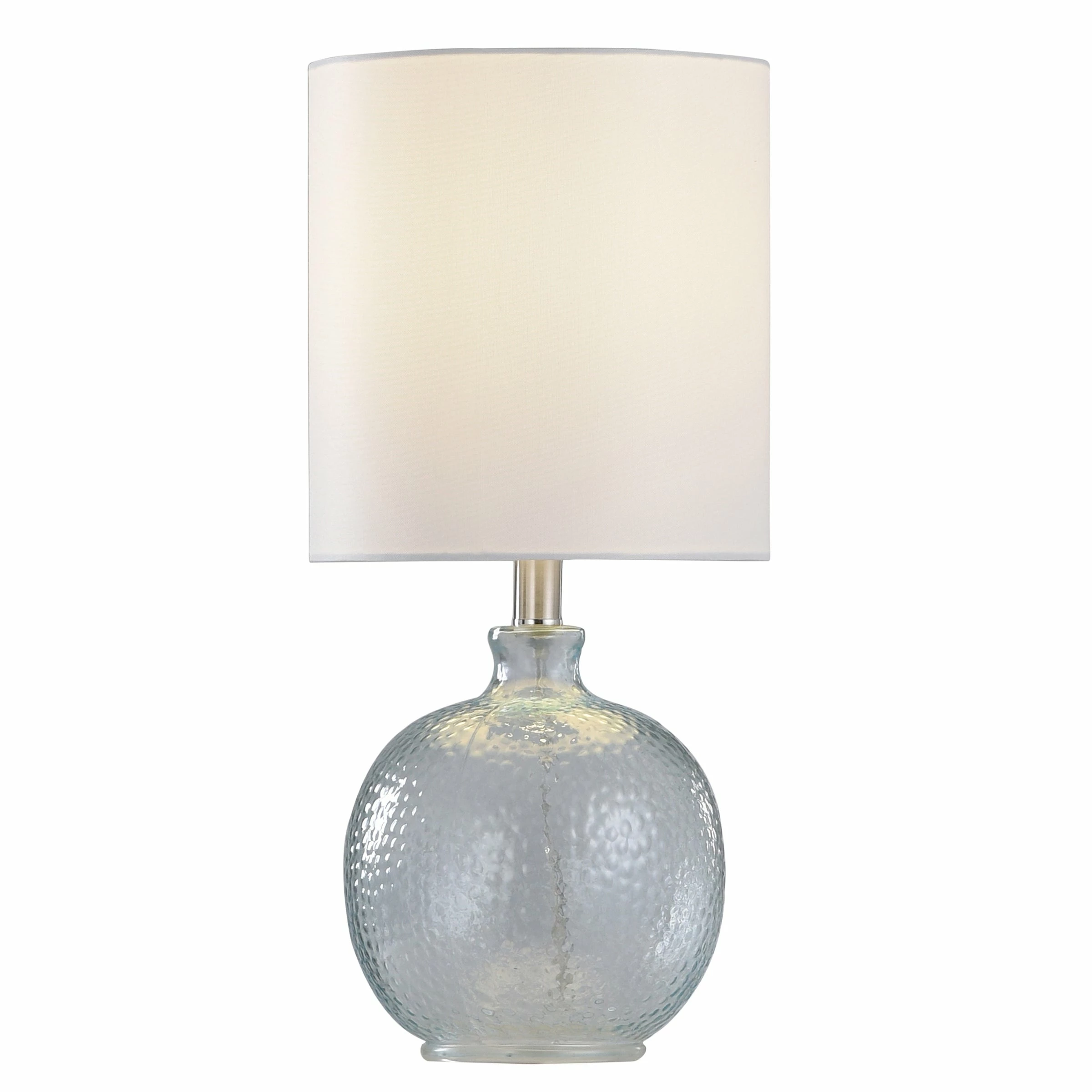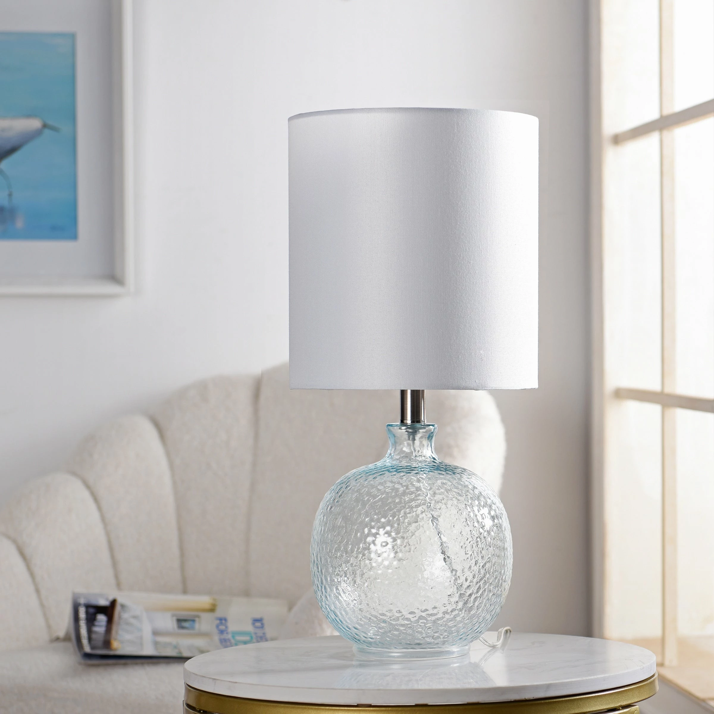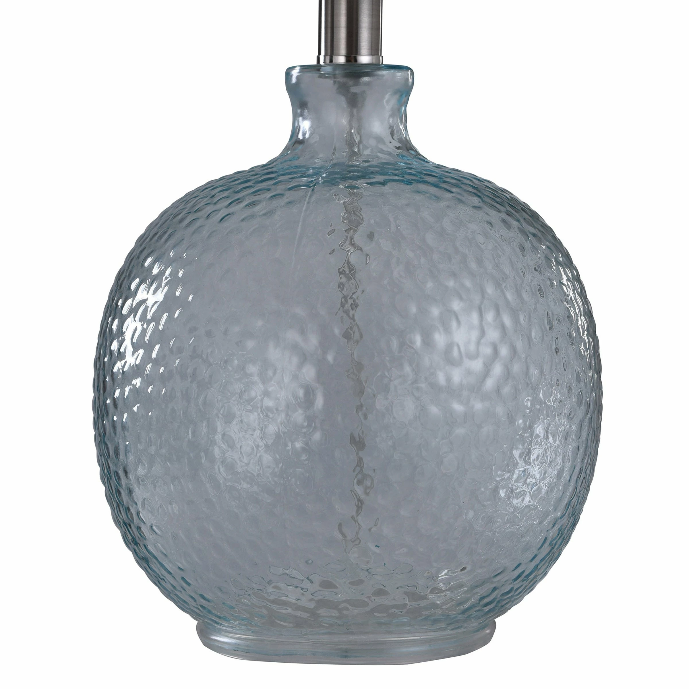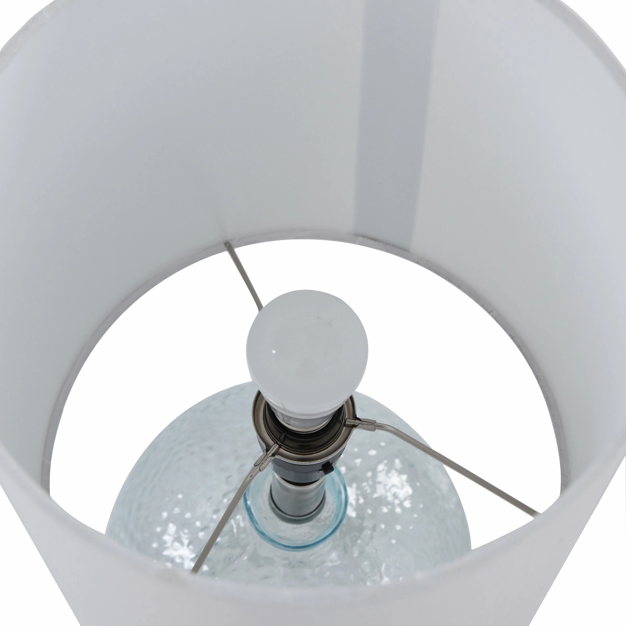This glass table lamp brings a touch of antique beauty to any master suite. The translucent finish brings a fun, exciting quality to the fixture. The shade is constructed from white fabric and complements the glass body. A handpainted finish means each piece is unique, with possible slight variations. No two lamps are exactly alike.