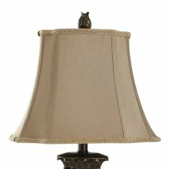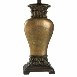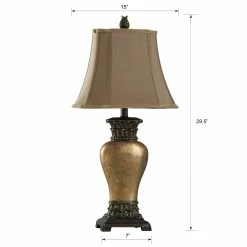 This table lamp comes in a brown, bronze, gold, amber finish with a taupe shade; Requires one (1) 100-watt Incandescent E26 base bulb (not included).