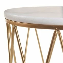 - Finish: Gold Painted Metal Frame With Natural White Marble Table Tops