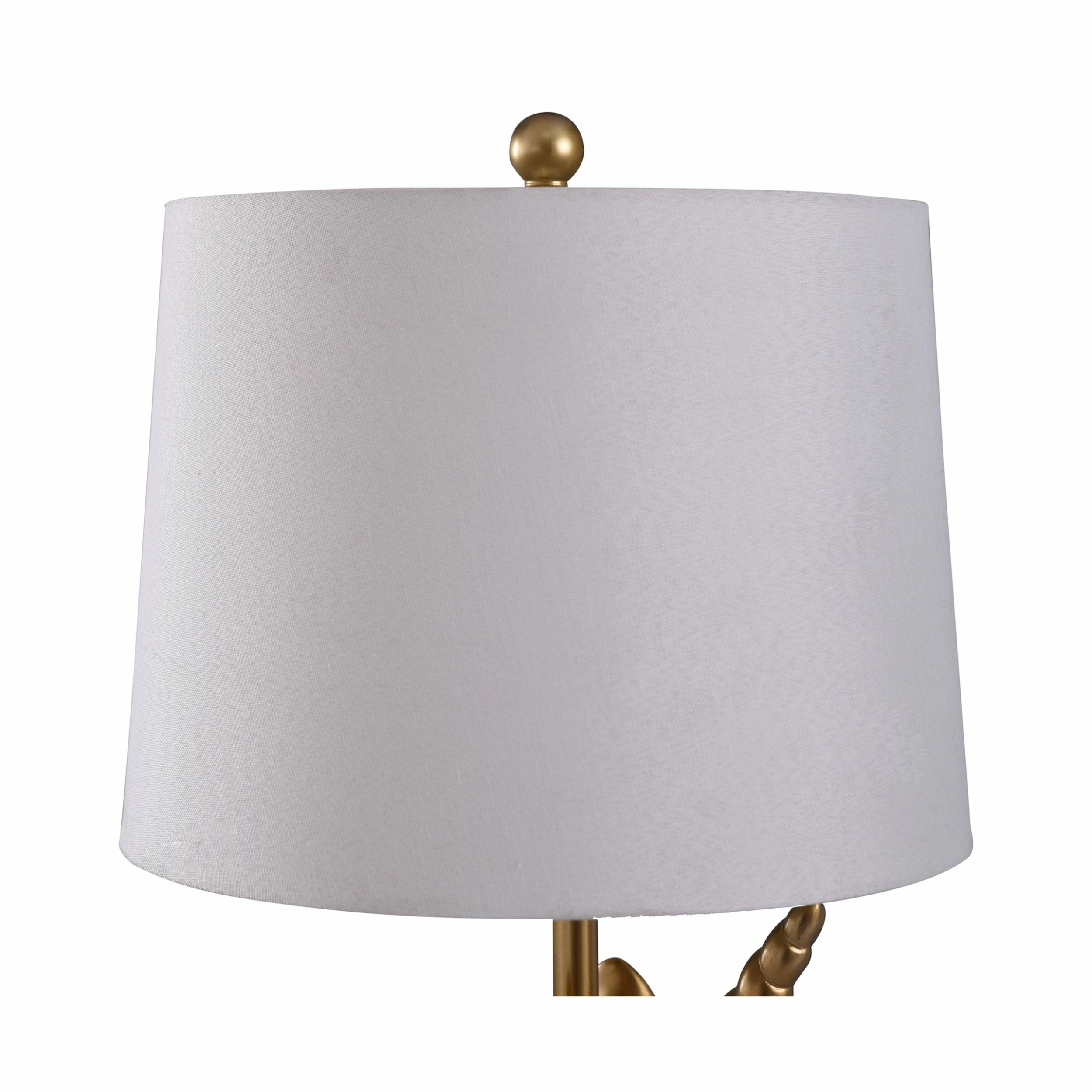 This table lamp comes in a gold finish with white shade; Requires one (1) 60-watt Incandescent base bulb (not included).
