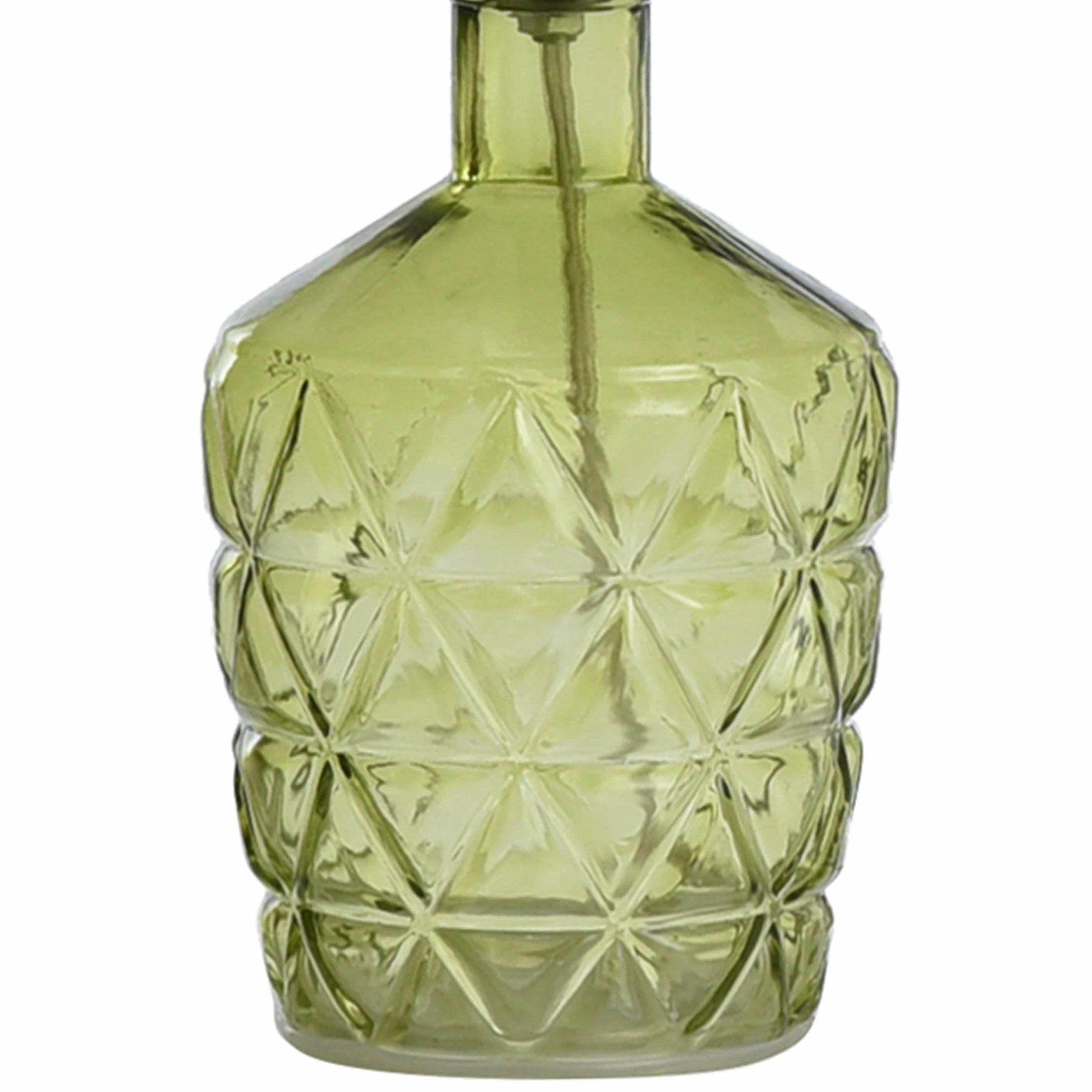 This glass table lamp showcases an open bottom design with textured detail. Its translucent green body is perfectly paired with a brown shade, elevating the breezy casualness of this beauty. It’s ideal for an airy, light-filled beach house or vacation home.