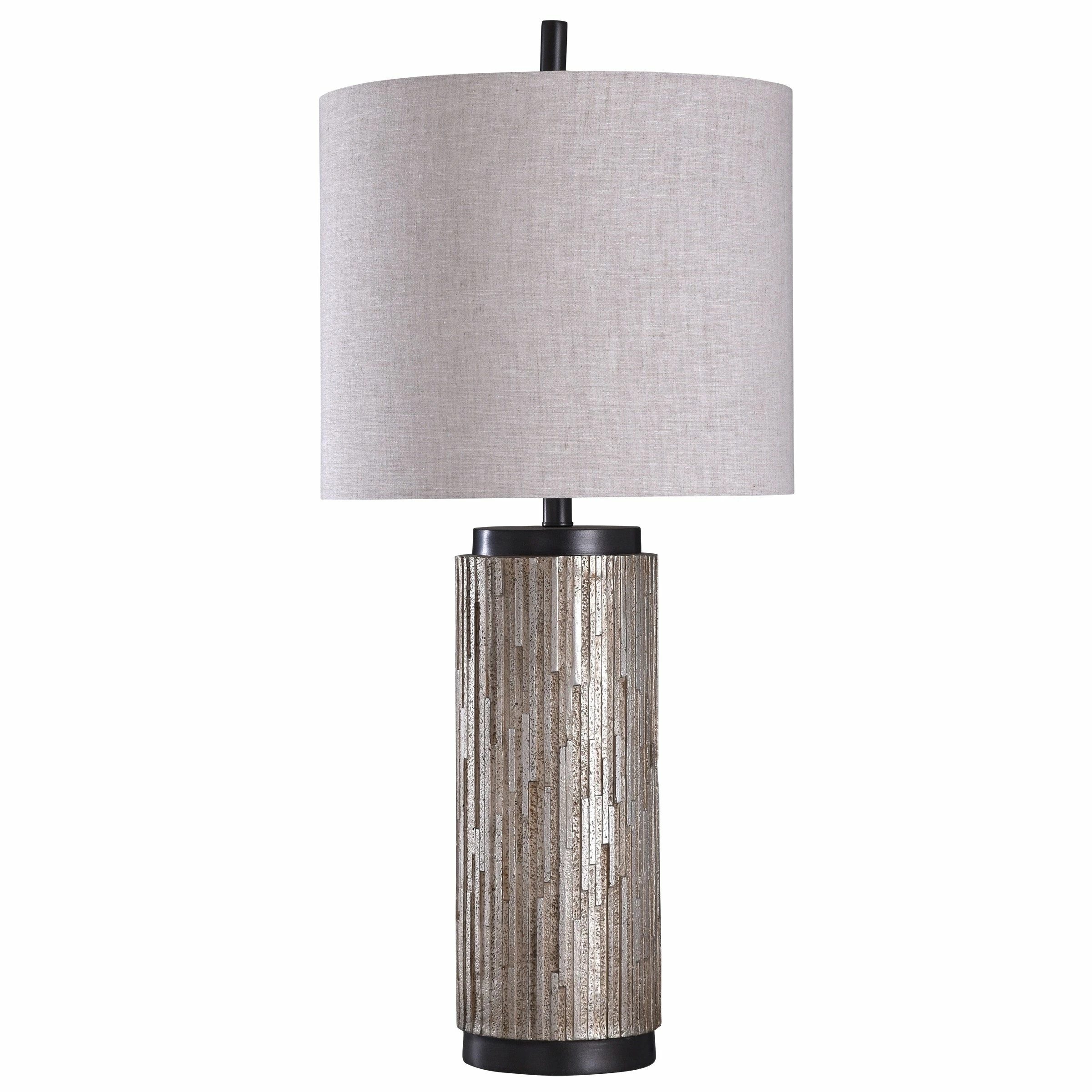 This poly table lamp uses a simple cylindrical form paired with a round hardback in heavy white styrene with a rolled edge to create a handsome look. It’s a fantastic touch for entryways and bedsides alike. This Table Lamp comes in a black and silver steel and polyresin frame with a grey styrene shade; Requires one (1) 150-watt Incandescent E26 base bulb (not included).