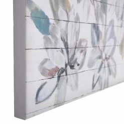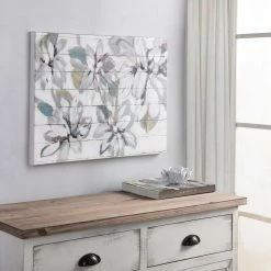 This hand painted floral wood pallet draws influence from seaside surf art and gives it a cool, modern vibe. Made using boards of pallet wood, this custom piece is painted by hand to create a laid back and welcoming aesthetic in a variety of spaces. It’s the perfect encapsulation of California cool made versatile for any room in your home.