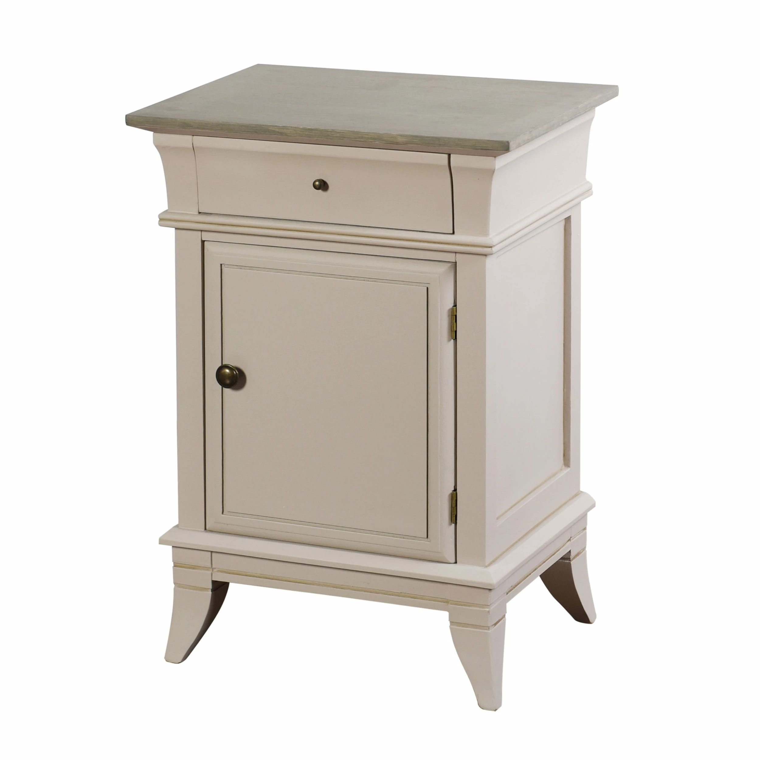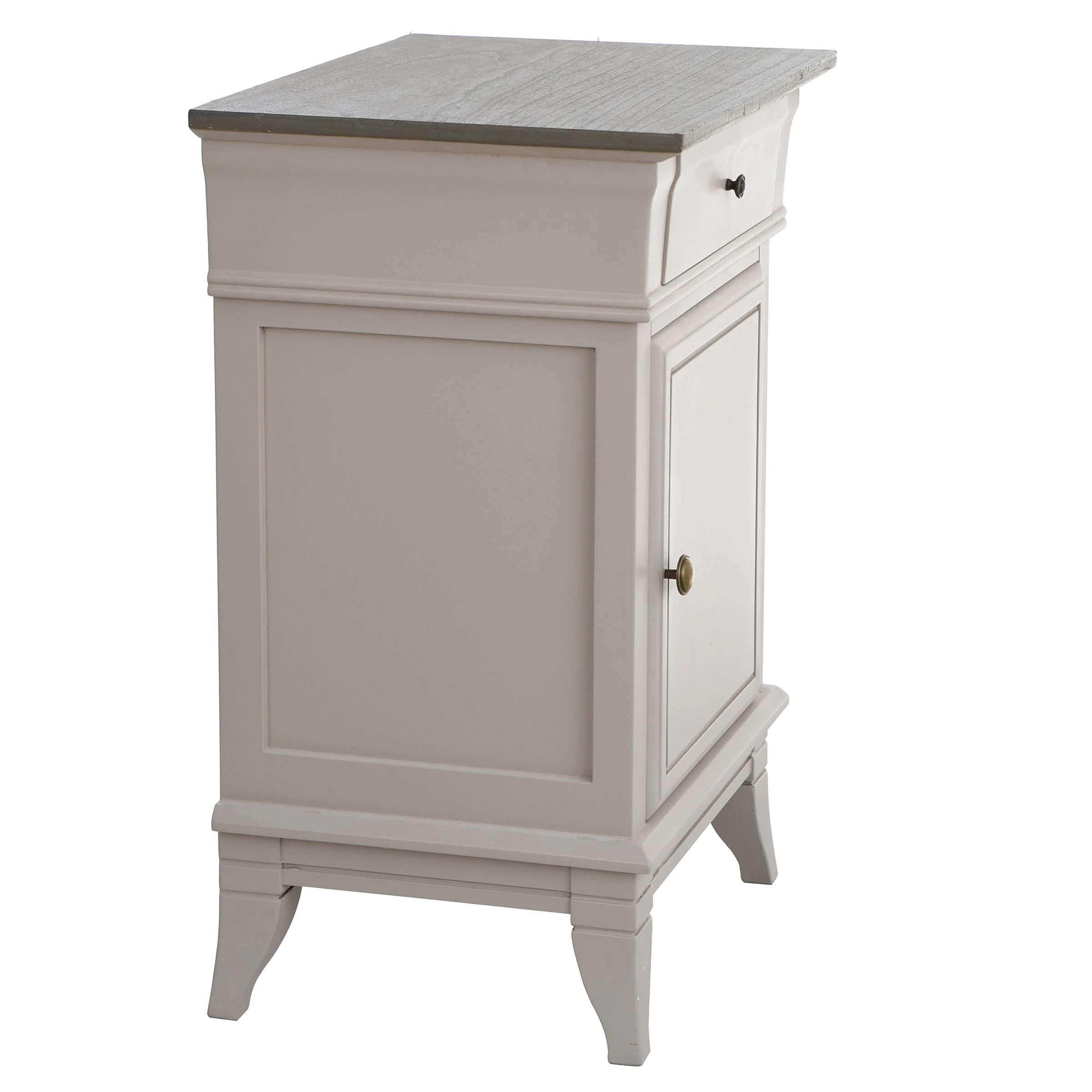 The Ivan side cabinet is made using paulownia and MDF with white trim and a contrasting natural wood top that features a drawer for a classic look. The top drawer features two stage metal ball bearing drawer glides for ease of use. This side table is a vintage inspired favorite that will help lend a stylish farmhouse feel to any home.