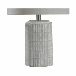 Whether you want it in the living room or study, the Joni table lamp is a versatile way to bring light into a room. It is made of concrete, so you can be certain it is not going anywhere, and features a gray and white distressed finish. Brilliant illumination shines through the round, hardback shade, so you can bring warmth into any room of your house. A handpainted finish means each piece is unique, with possible slight variations. No two lamps are exactly alike.