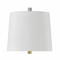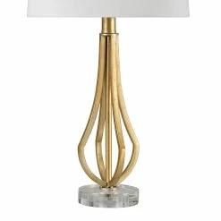 Bring utter opulence into your house with the visually-striking Linda table lamp. This particular lamp is noteworthy for its white styrene shade and crystal clear base. The antique gold finish on top of the acrylic and metal body will make it a focal point of your master suite. A handpainted finish means each piece is unique, with possible slight variations. No two lamps are exactly alike.