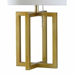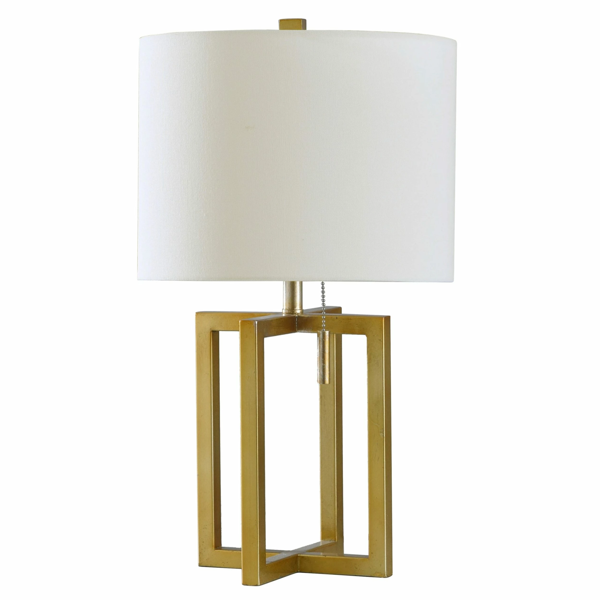 This table lamp comes in a solid gold frame with a brussels off white shade; Requires one (1) 60-watt Incandescent E26 base bulb (not included).
