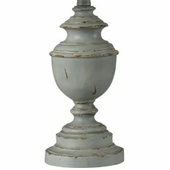 This table lamp comes in a distressed blue and green frame with a white shade; Requires one (1) 40-watt Incandescent E26 base bulb (not included).