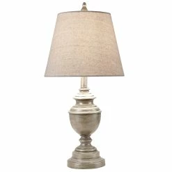 From the Marion Collection, the Marion table lamp was designed with excellence in mind. It is a poly resin lamp featuring a weathered grey finish for a more classical touch. Place it on an accent table in your family room that will highlight the robust hardback shade. A hand painted finish means each piece is unique, with possible slight variations. No two lamps are exactly alike.