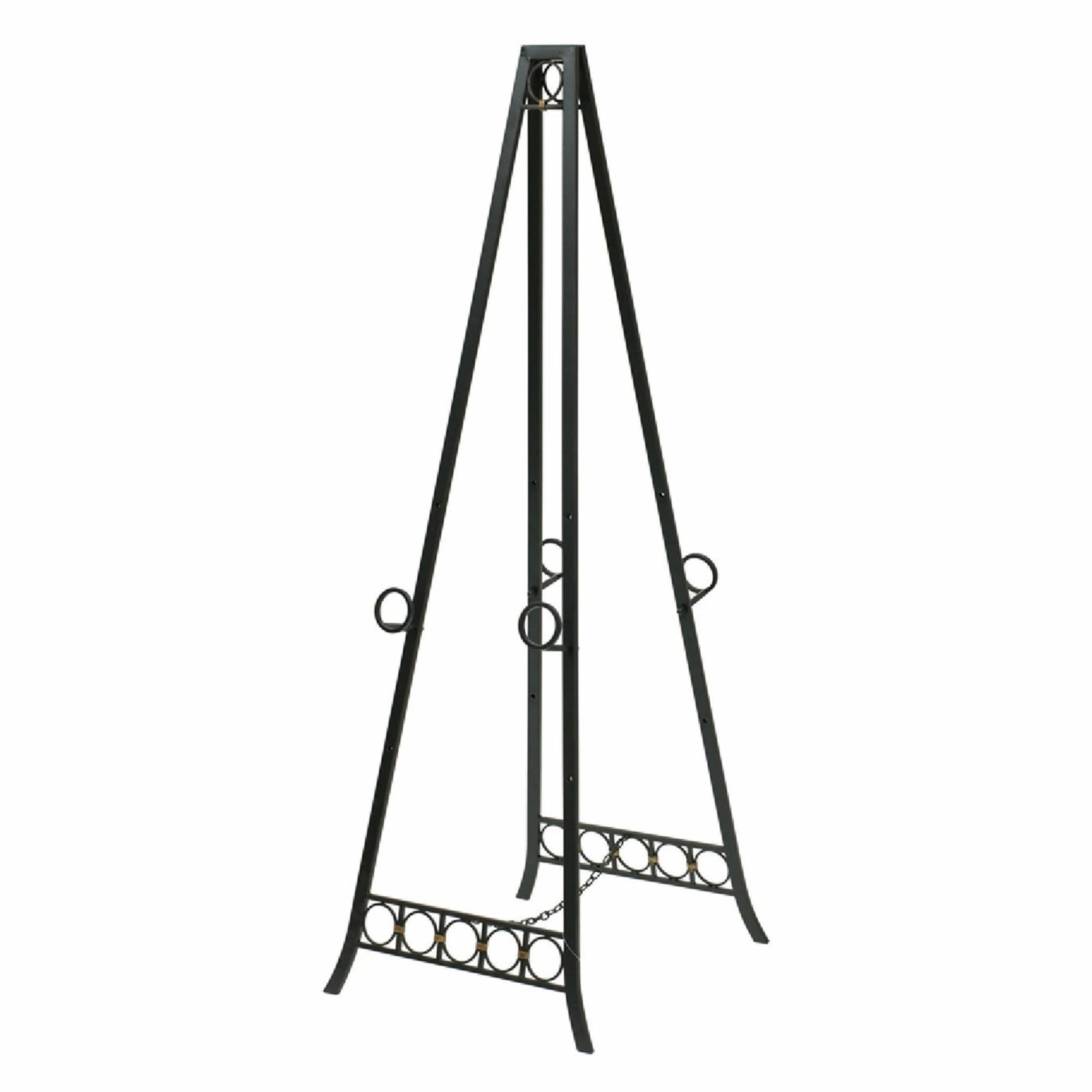 With its dark bronze finish and large size, this double easel can be the focal point of living room dΓ©cor. The adjustable metal frame features clean lines and circular accents. Upgrade the look of any space with this beautiful home accent floor easel.