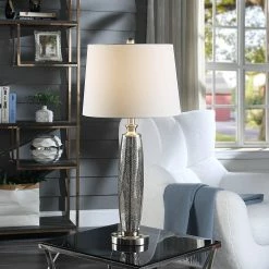 The Northbay Table Lamp brings a modern look and vibe into the home. The slender mercury glass and brushed steel body is adorned with a white hardback fabric drum shade. Add it to your living room to really spice things up.