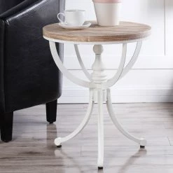 This elegant Quail Farm Side Table adds the perfect touch of whimsy and function to any room. The white metal table frame features refined curves and lovely lines that lend an air of gracefulness to the room. The round natural wood tabletop is the perfect place to drop your glass of wine while you enjoy a good book or could be the ideal resting spot for the spoils of your weekly flower purchase.