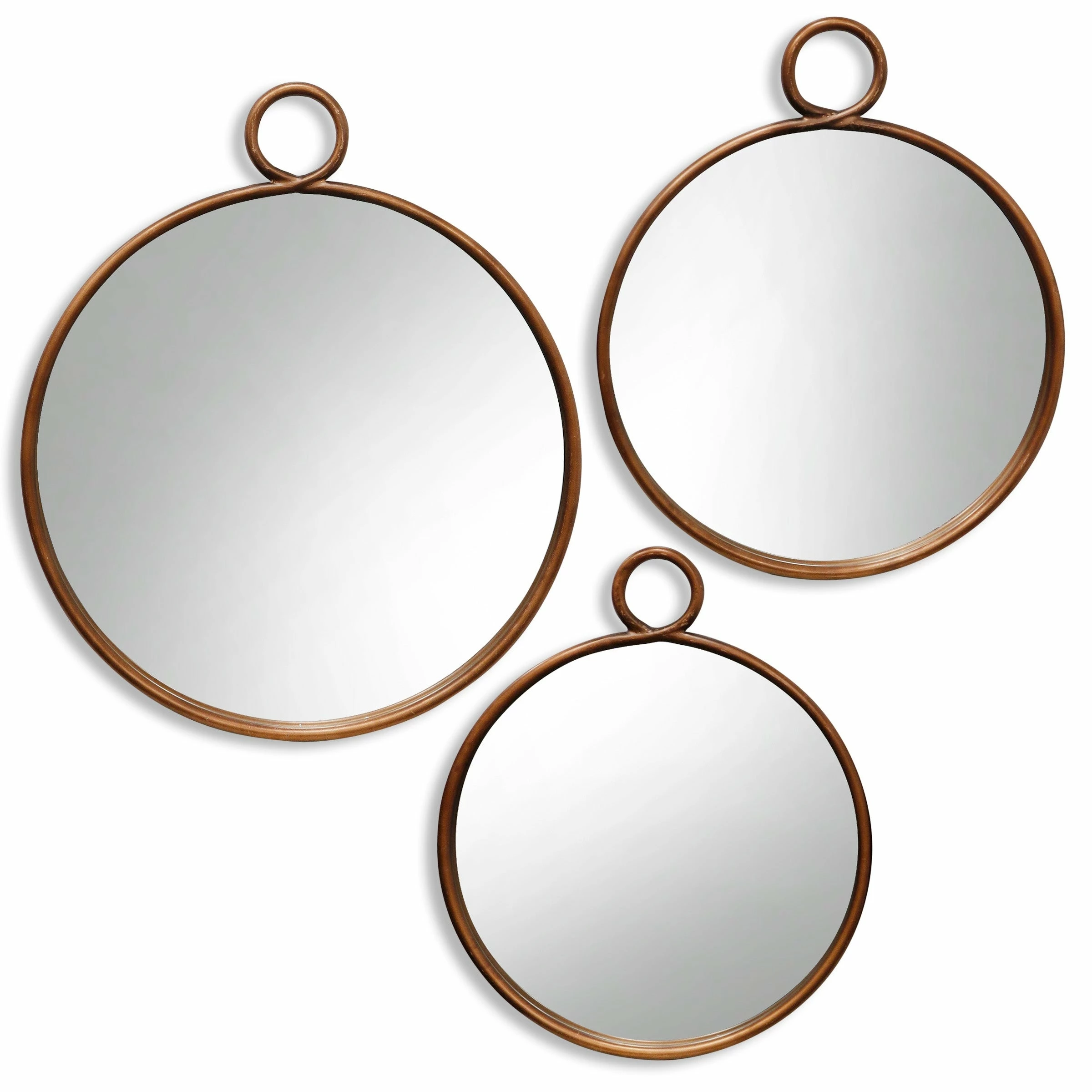 This chic round bronze metal mirror set is just as fun as it is fabulous. Featuring a chic iron metal framed stopwatch shaped motif that will make contemporary and modern style lovers swoon, this versatile set of 3 mirrors can be arranged in a myriad of combinations and patterns to bring any living room, hallway or bedroom to life.
