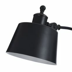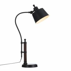 An industrial-inspired task lamp that’s ideal for an office desk or a bedroom nightstand, this fixture has a russet bronze frame with black accents. The shade is made of black metal. With its intriguing design and dark colors, this bronze table lamp is a striking addition to a hallway, dining room, or living room.