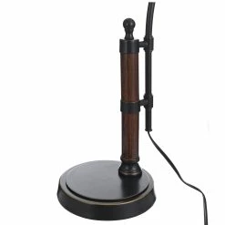 This Table Lamp comes in a russet bronze metal frame with a black metal shade; Requires one (1) 60-watt Incandescent E26 base bulb (not included).