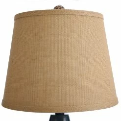 This Table Lamp comes in a sea blue poly frame with a cream hardback canvas shade; Requires one (1) 100-watt Incandescent E26 base bulb (not included).