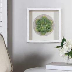 Bring nature indoors with this three-dimensional Hello Friend IV botanical wall art. Enclosed in a wood and metal frame, the green layered, flower petals inside this shadowbox will empty walls to life with a much-needed splash of color. This piece will fit beautifully in living rooms, bedrooms, hallways, offices and foyers alike.