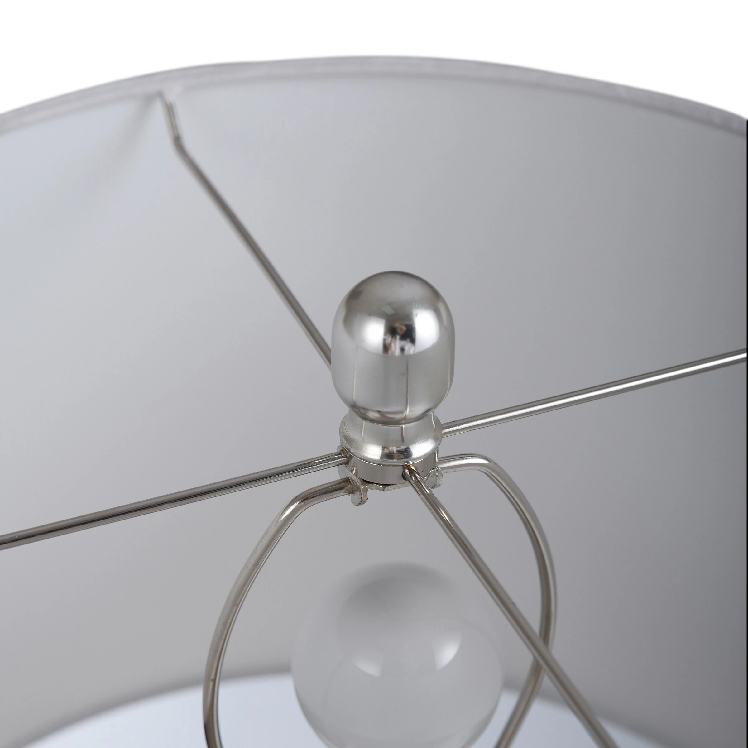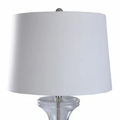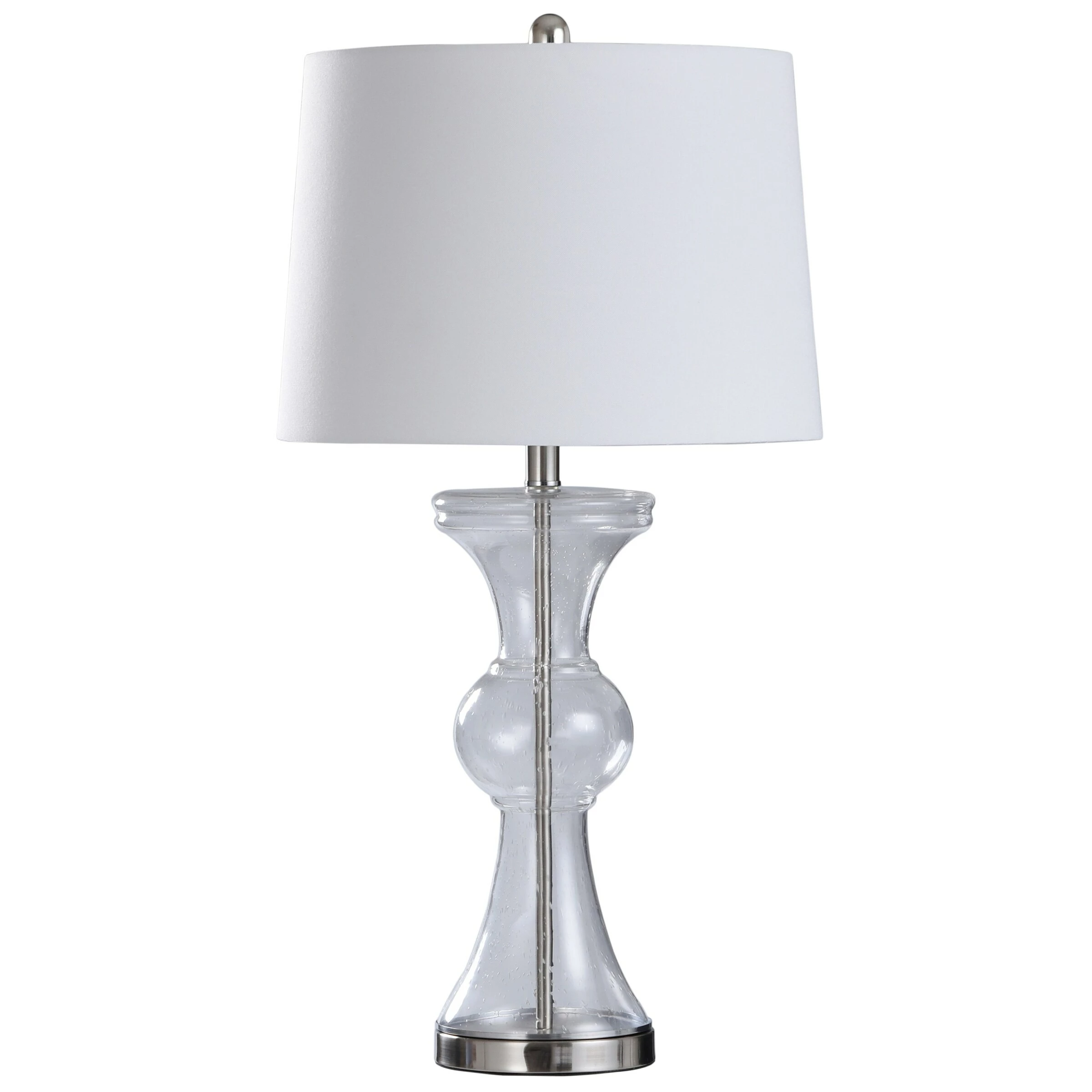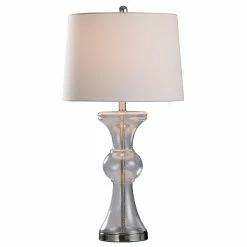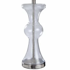 Table Lamp with Glass Body and Brushed Steel Base in Clear Seeded Finish with White Shade