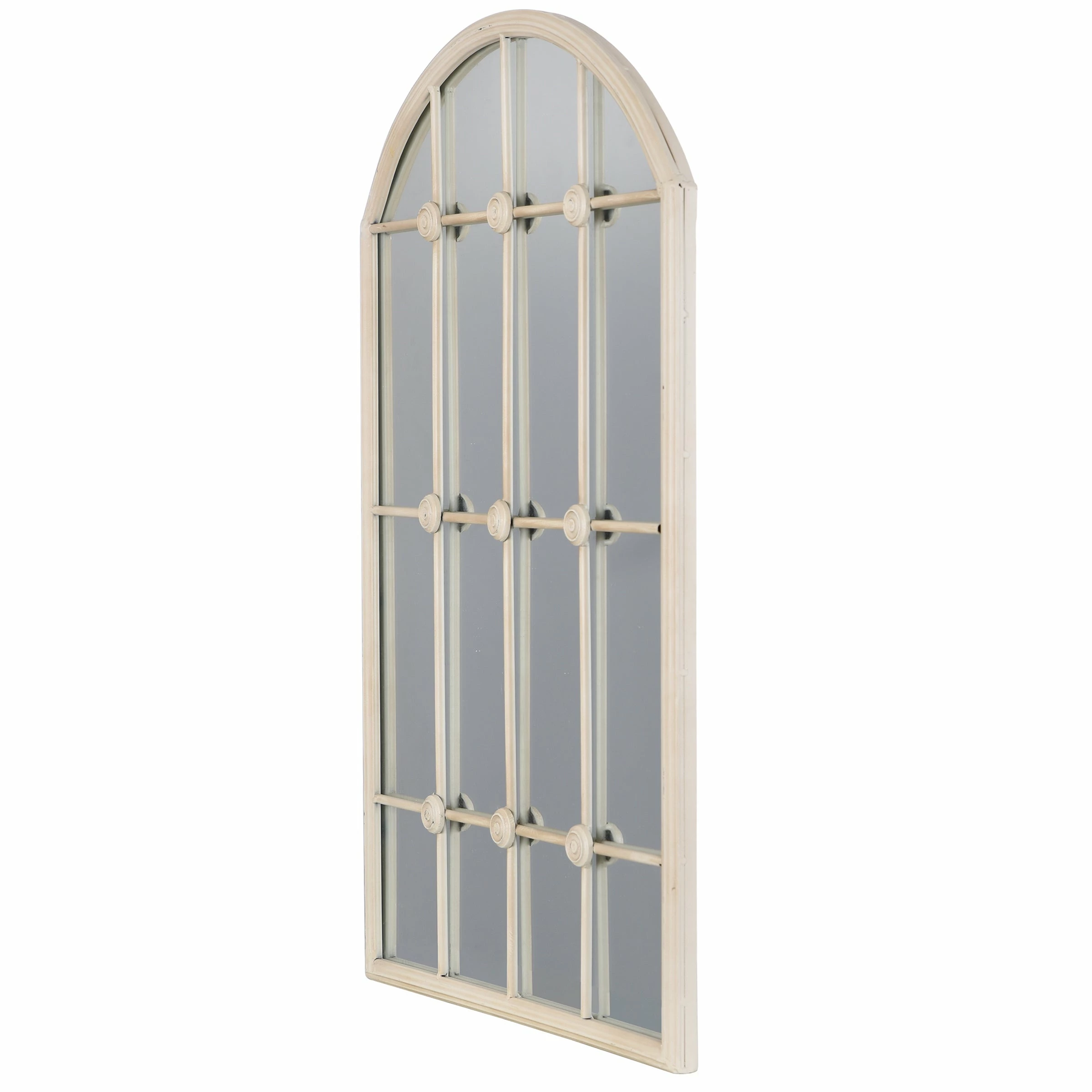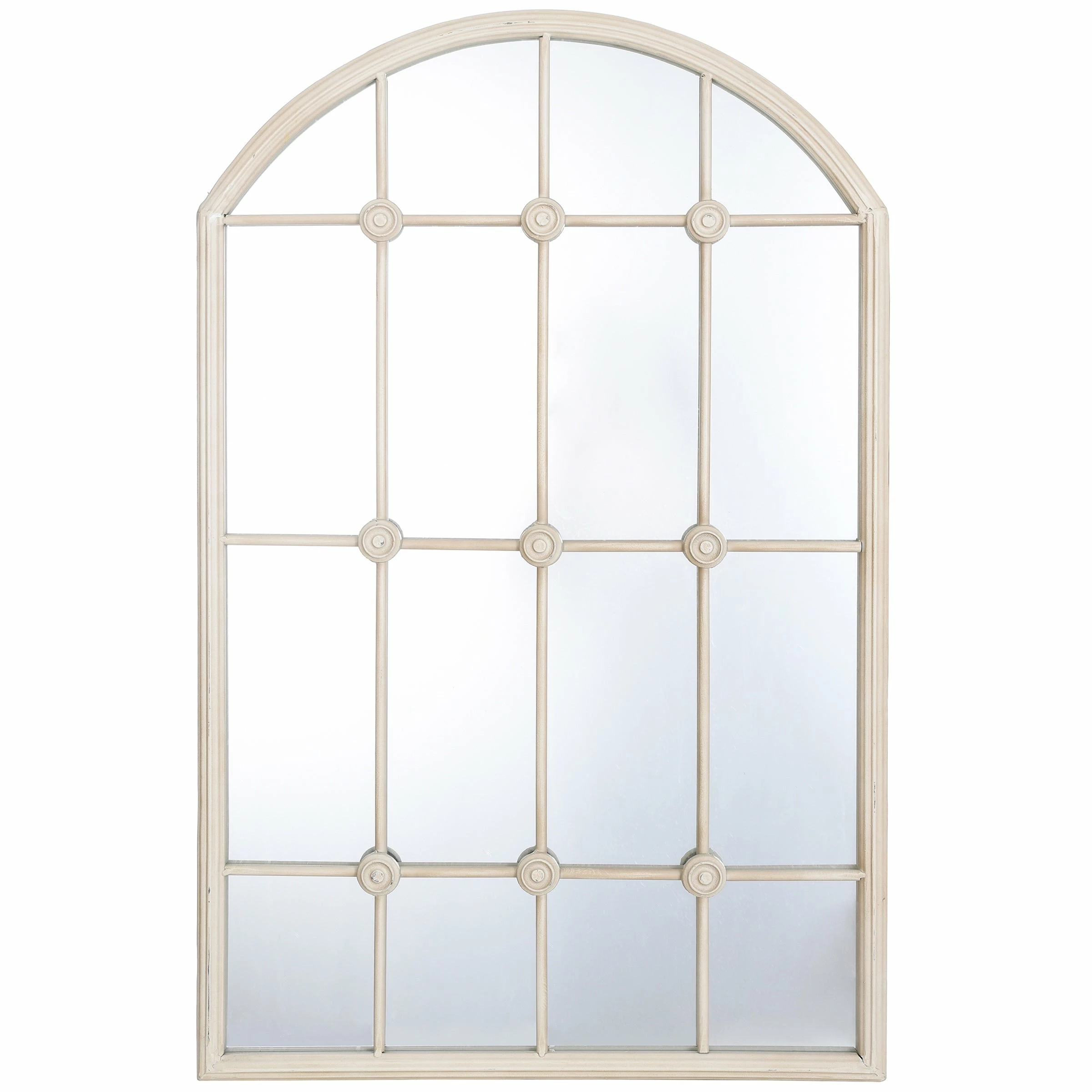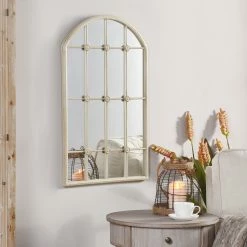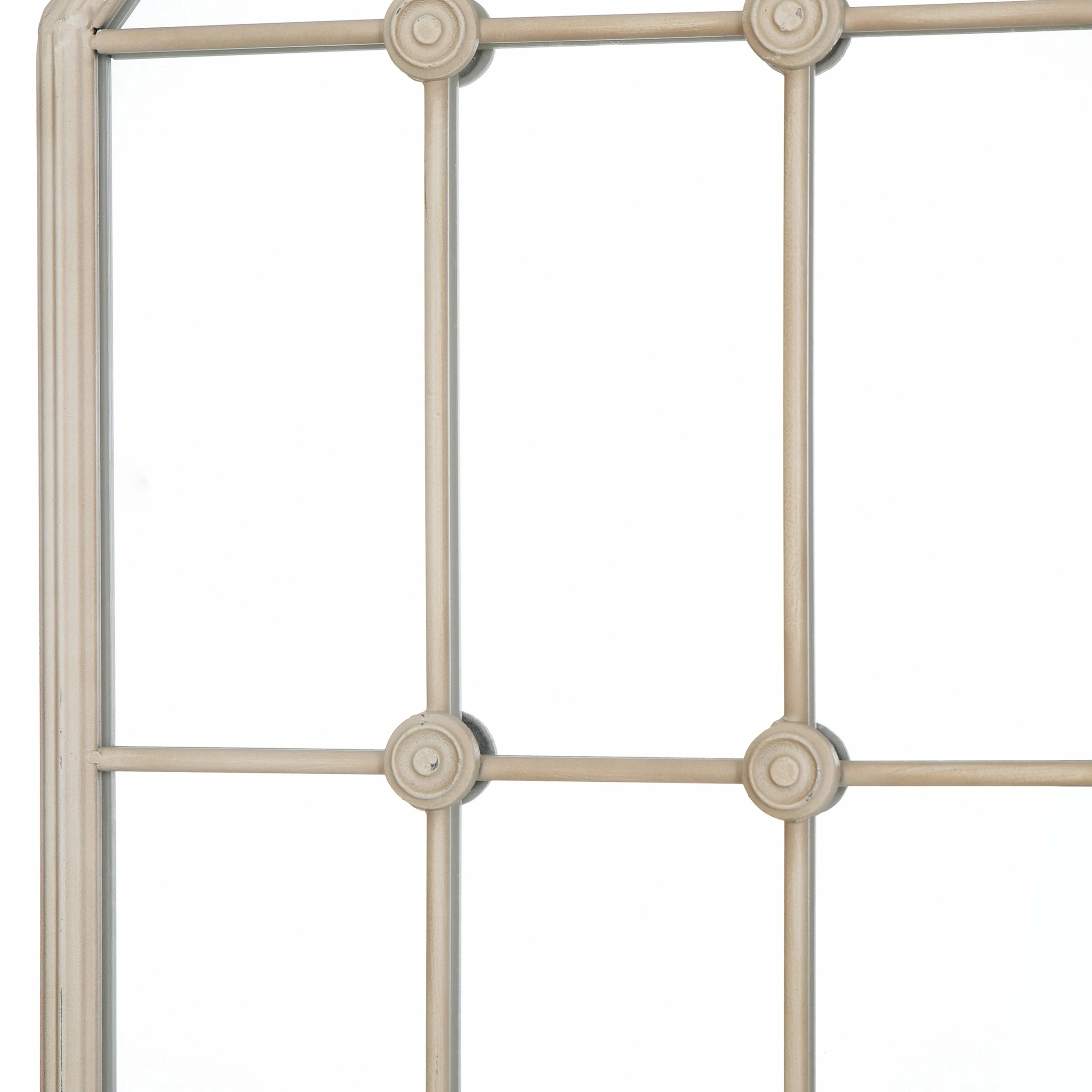 This Taylor taupe window pane wall mirror is the perfect way to provide some classic charm to your bedroom, living room, or foyer. Its distinctive powder-coated iron metal frame is used to artfully encase the window-shaped wall mirror. Perfect for the room in your home that could use an extra window.